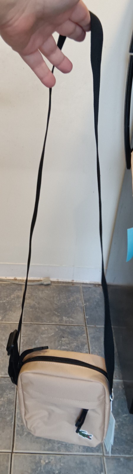 как выглядит Lacoste Unisex Zipper Shoulder Bag  Beige  Crossbody NEW WITH TAGS AUTHENTIC фото