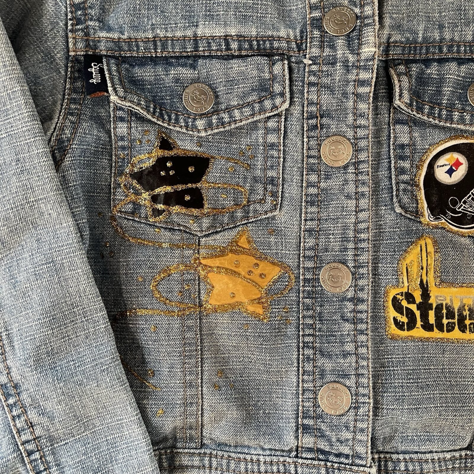 • Pittsburgh Steelers Jacket Kids M 5 Denim Blue Football Button Snaps Youth