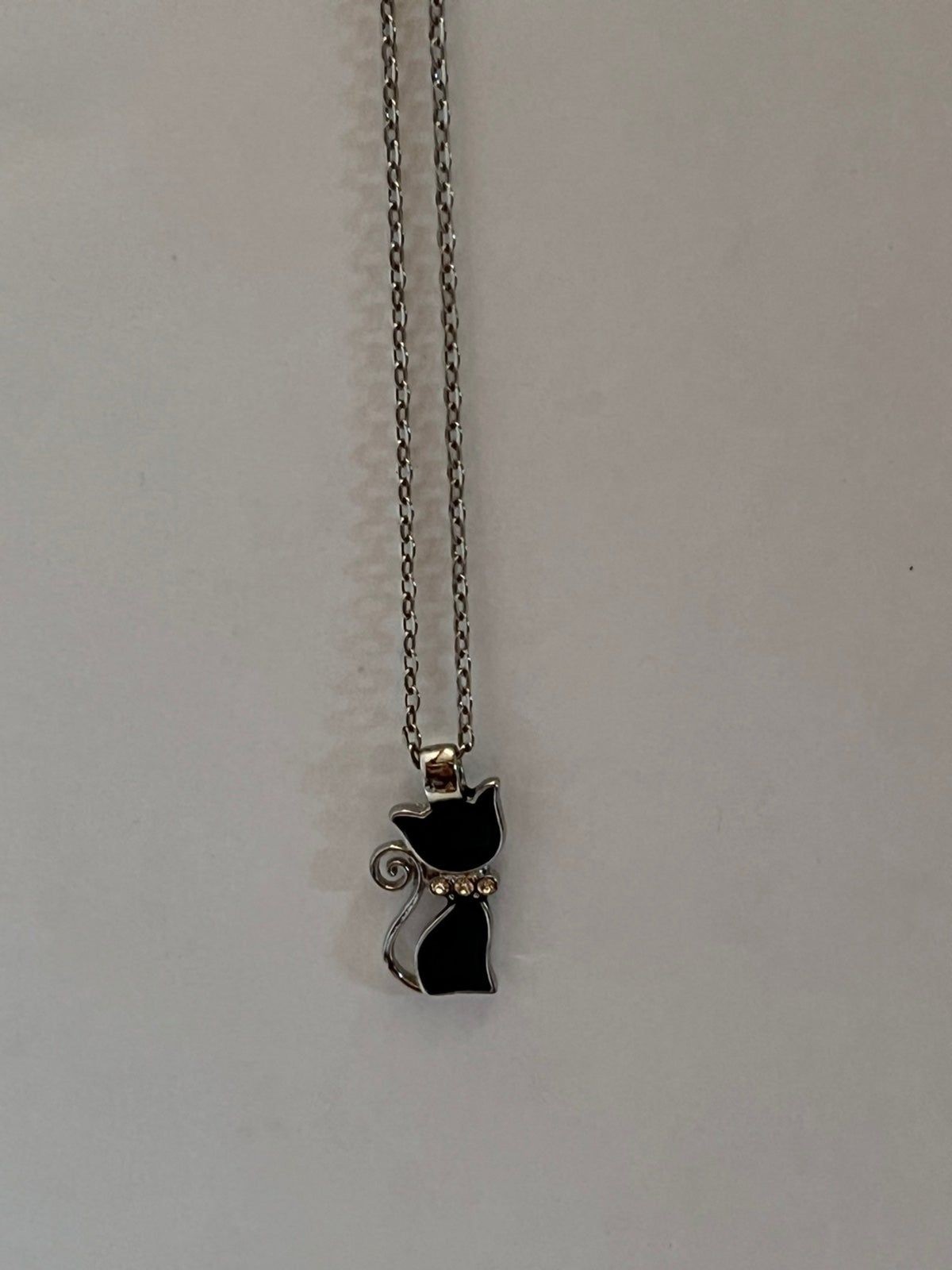 как выглядит Children s Black Cat Rhinestone Pendant Necklace Silver Chain Fashion Jewelry фото