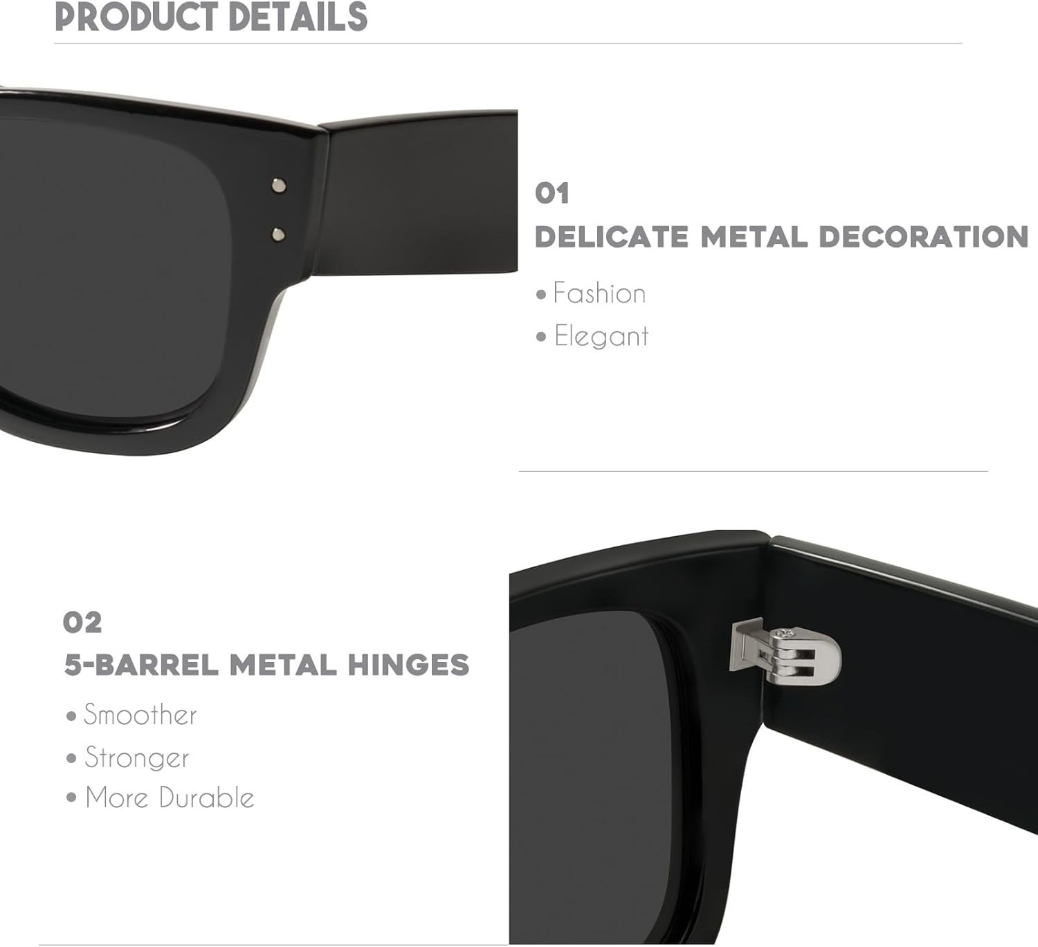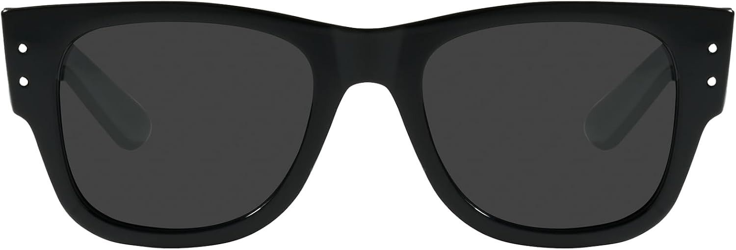 Mosanana Men Women Retro Polarized Square Chunky Temples Sunglasses, C1 Black