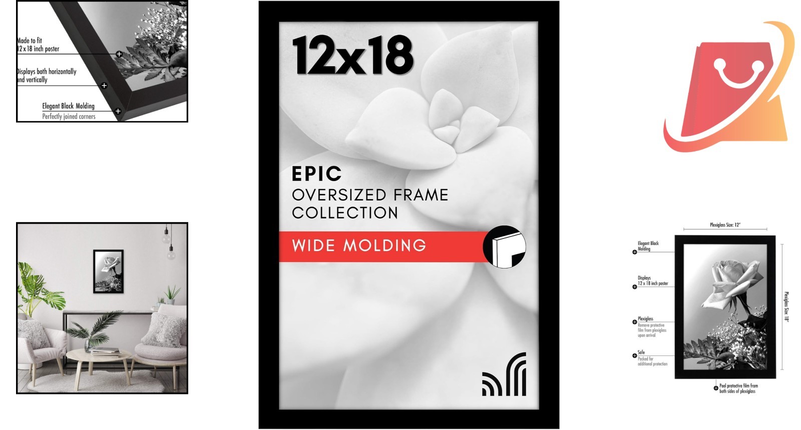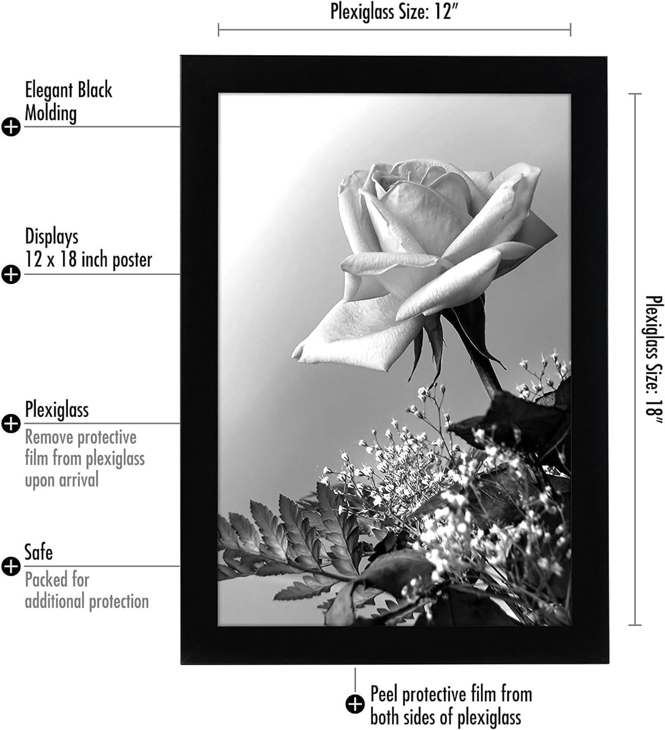 12x18 Poster Frame Black Engineered Wood Plexiglass Wall Hanging Modern