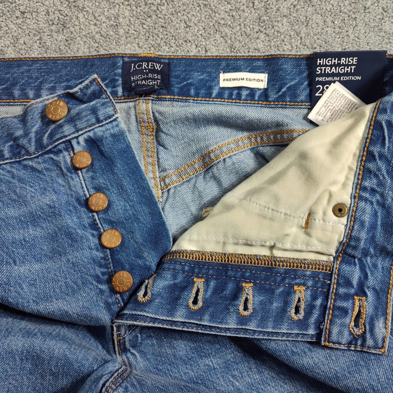 как выглядит J Crew Premium Edition High Rise Straight Jeans Womens Size 28 Light Wash Denim фото
