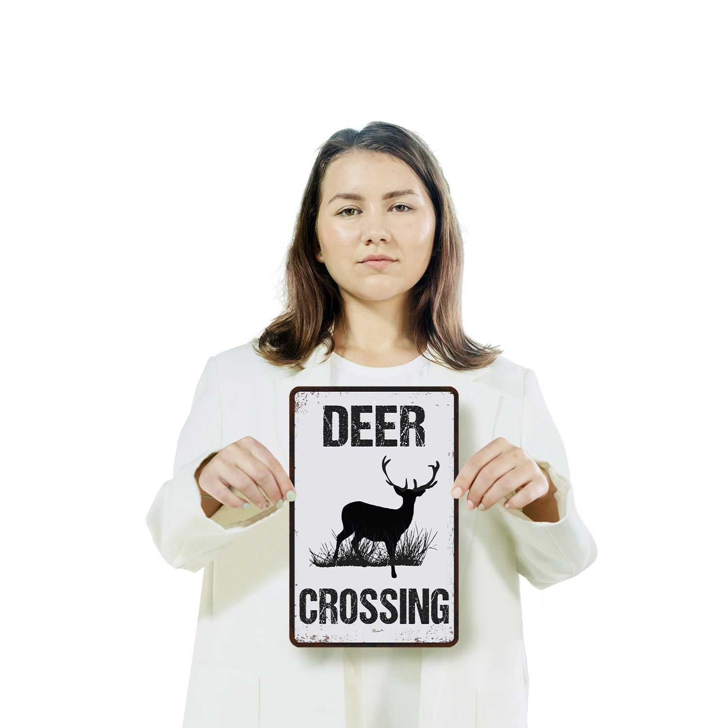 Buck Deer Crossing Distressed Sign Antlers On Patrol Perfect for Farm Lanes