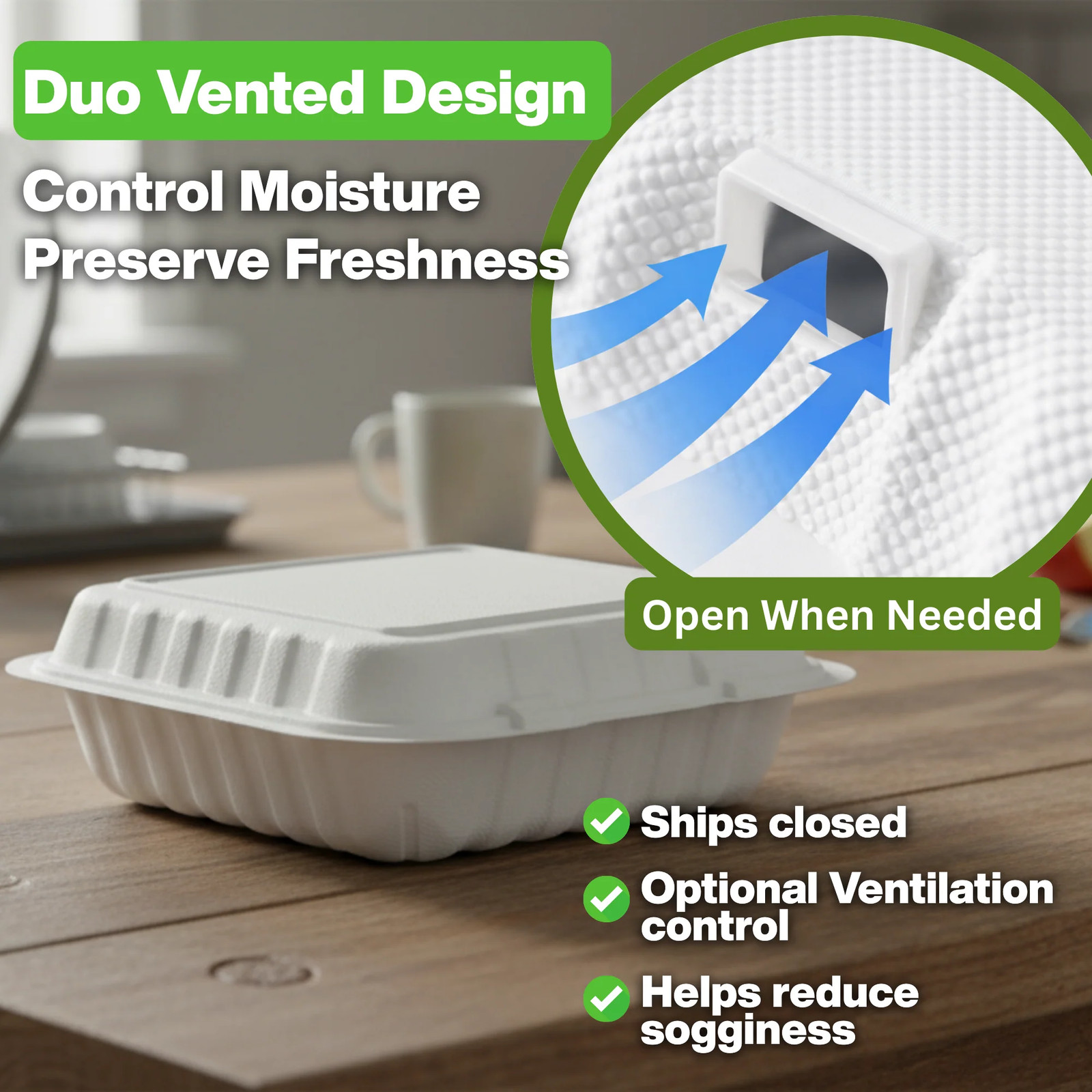 как выглядит Hinged Container, White, Vented, One Compartment, 9" x 9", 150pc 150/1 фото