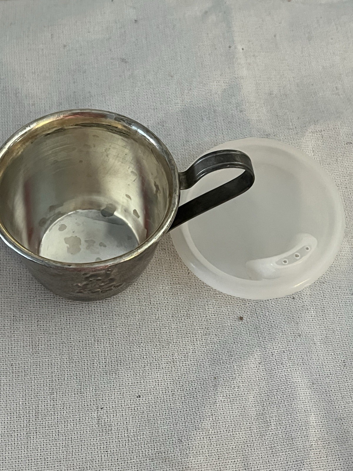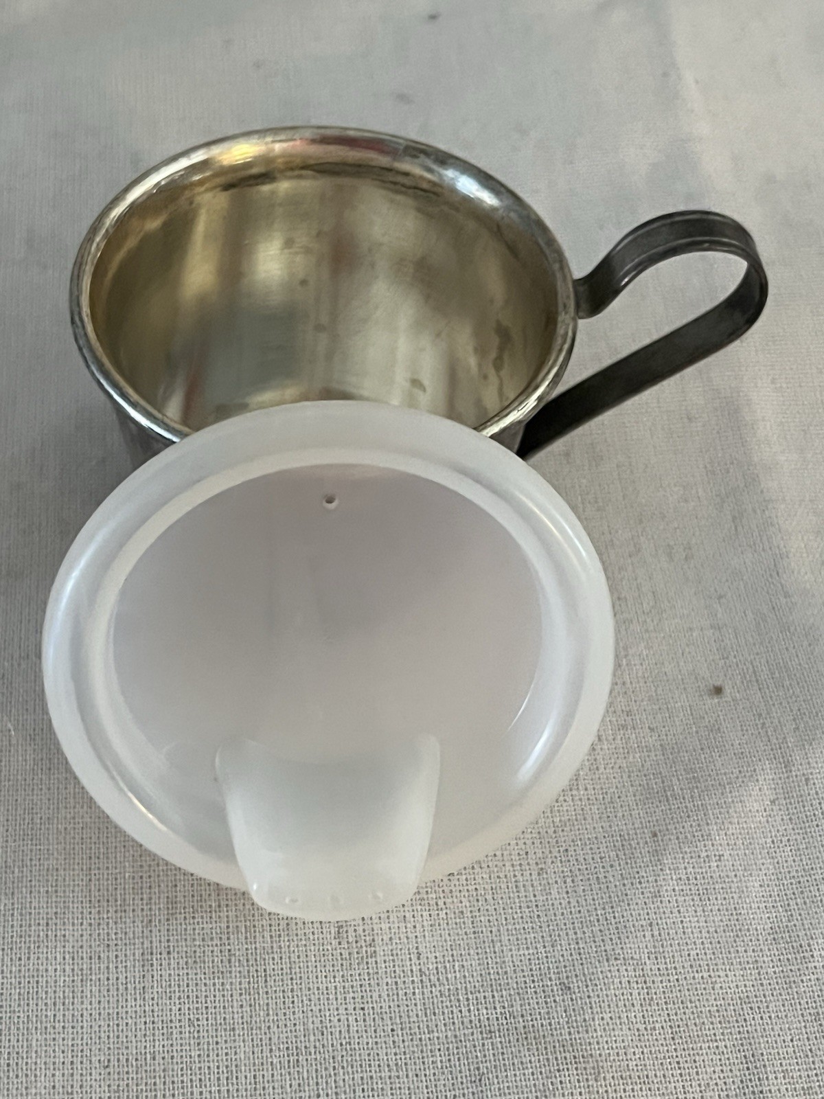• Vintage Silver Plated Baby Child Sippy Cup with Bear and Plastic Lid Really Cute