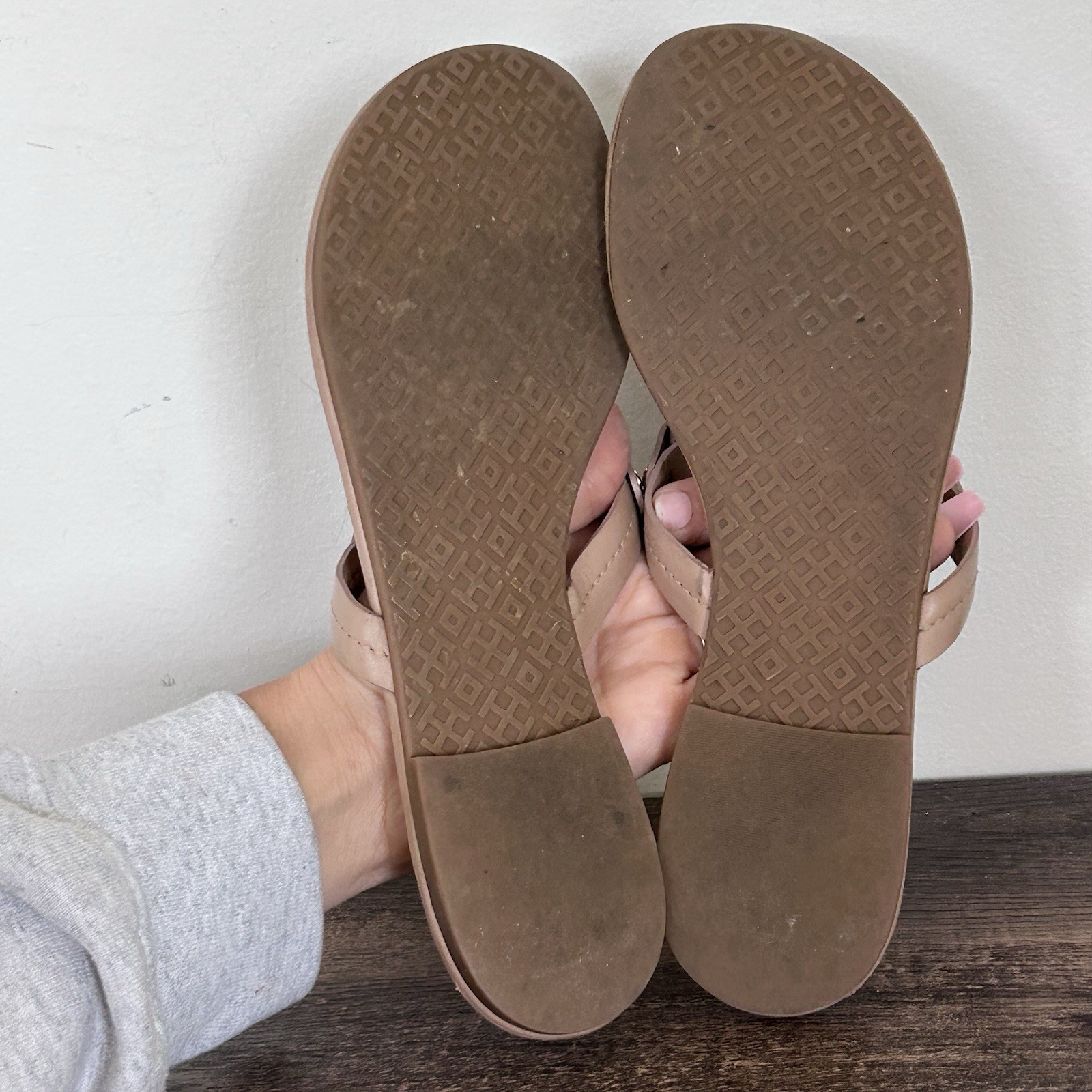 Tory Burch Miller Sandals Sand Beige Patent Leather Size 7 Flip Flops
