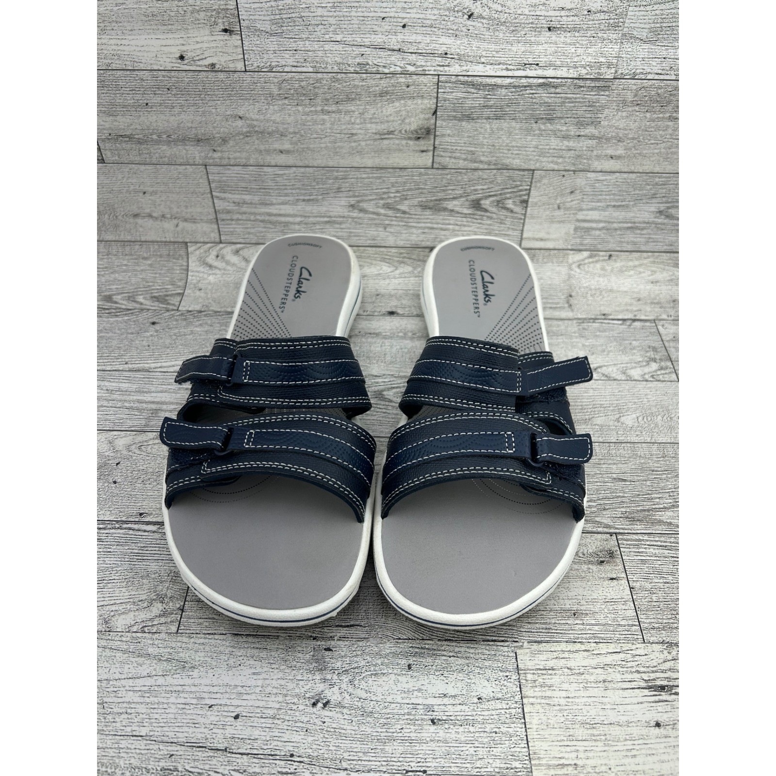 Clarks Cloudsteppers Adjustable Navy Blue Cushioned Slides Sandals Womens Size 8
