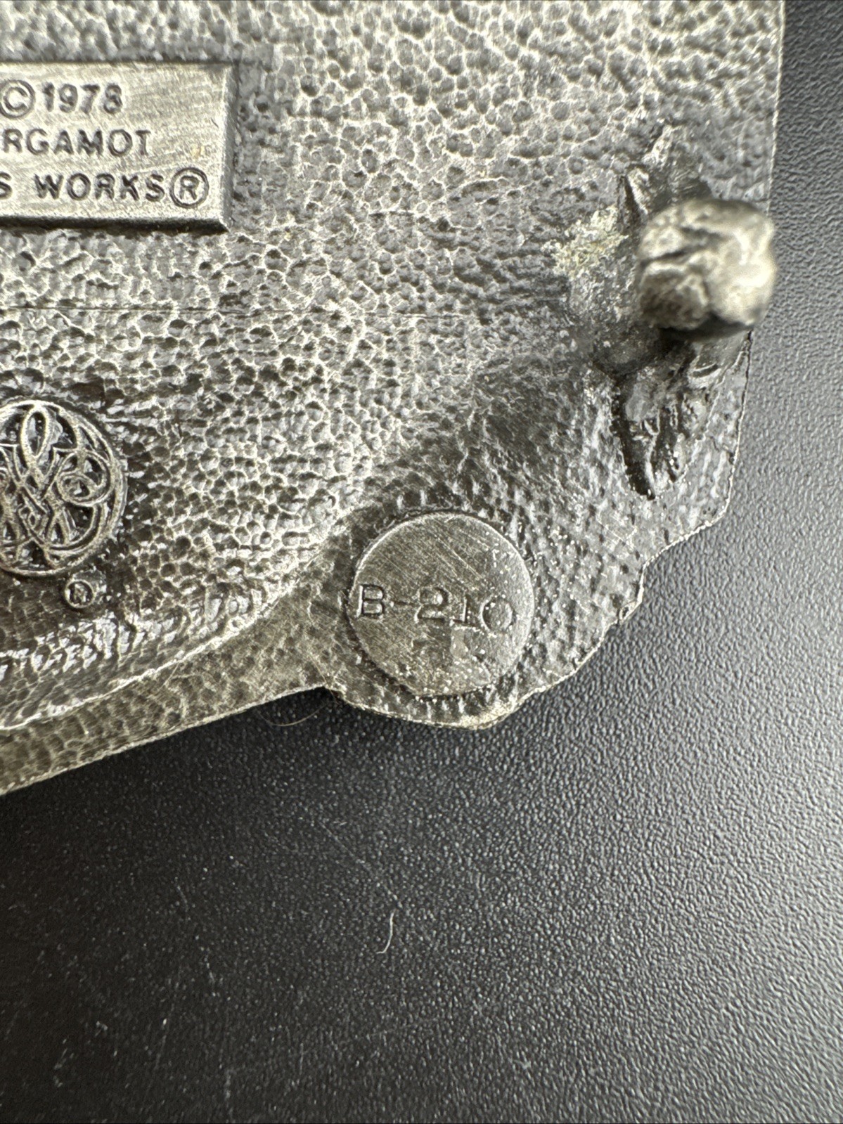 Bergamot Brass Works City Bus Belt Buckle Made in USA 1978 Pewter GRAYHOUND BUS