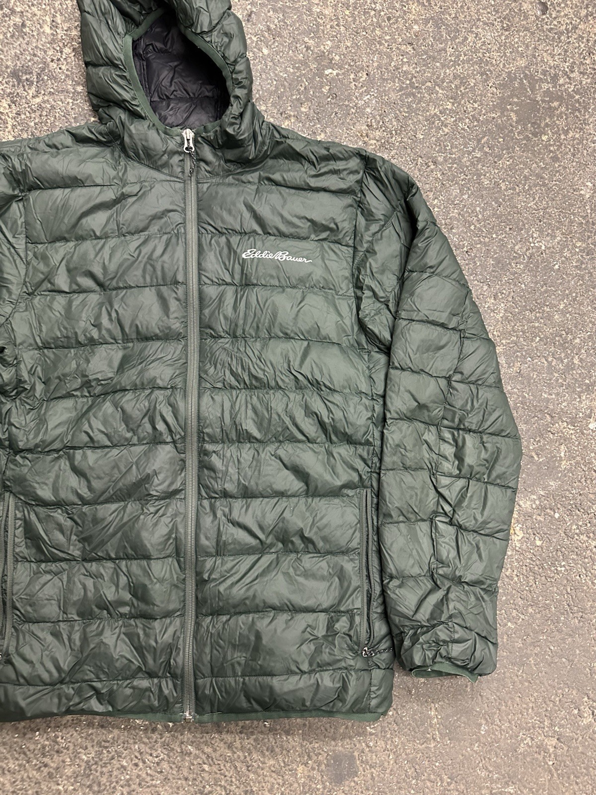 Eddie Bauer EB650 Down Puffer Coat Mens Medium Green Winter Outdoor