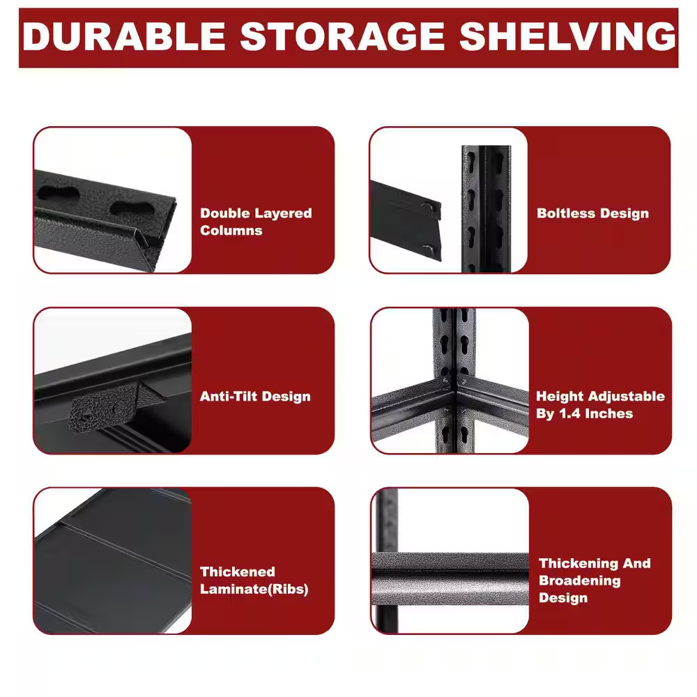 6-Shelf Heavy Duty Steel Adjustable Garage Storage Shelving Unit in Black 48 In