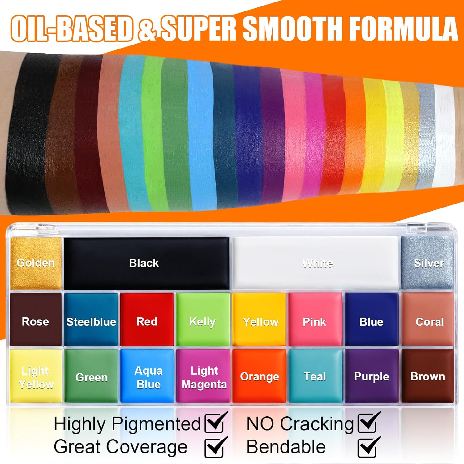 Face Body Paint Kit, 20 Colors Oil Based Painting Palette with 4 Professional Ar