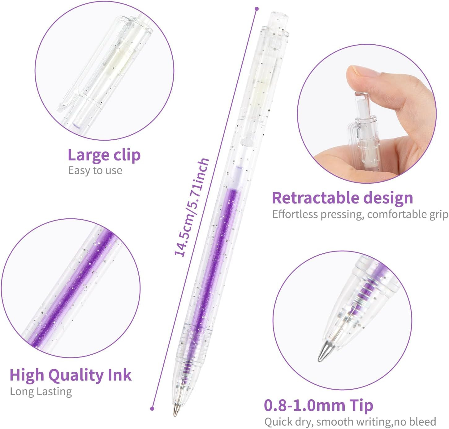 Glitter Gel Pens, 18 Colors Metallic Vibrant Sparkle Pen for Coloring Journaling