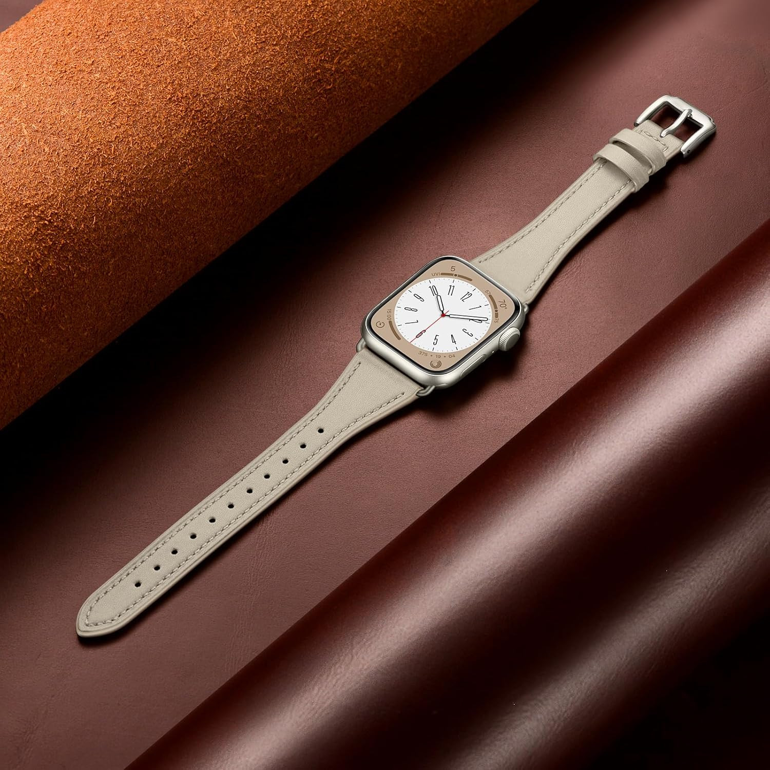 Slim Leather Bands Compatible with Apple Watch Band 42mm 41mm 40mm 38mm, Genuine