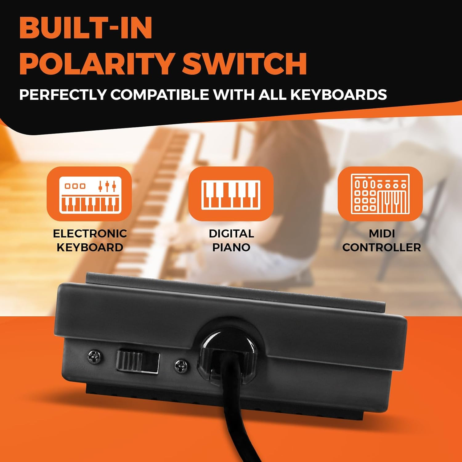 Artesia ASP-1 Universal Sustain Pedal with 6 ft 1.8 m Cable, Polarity Switch,