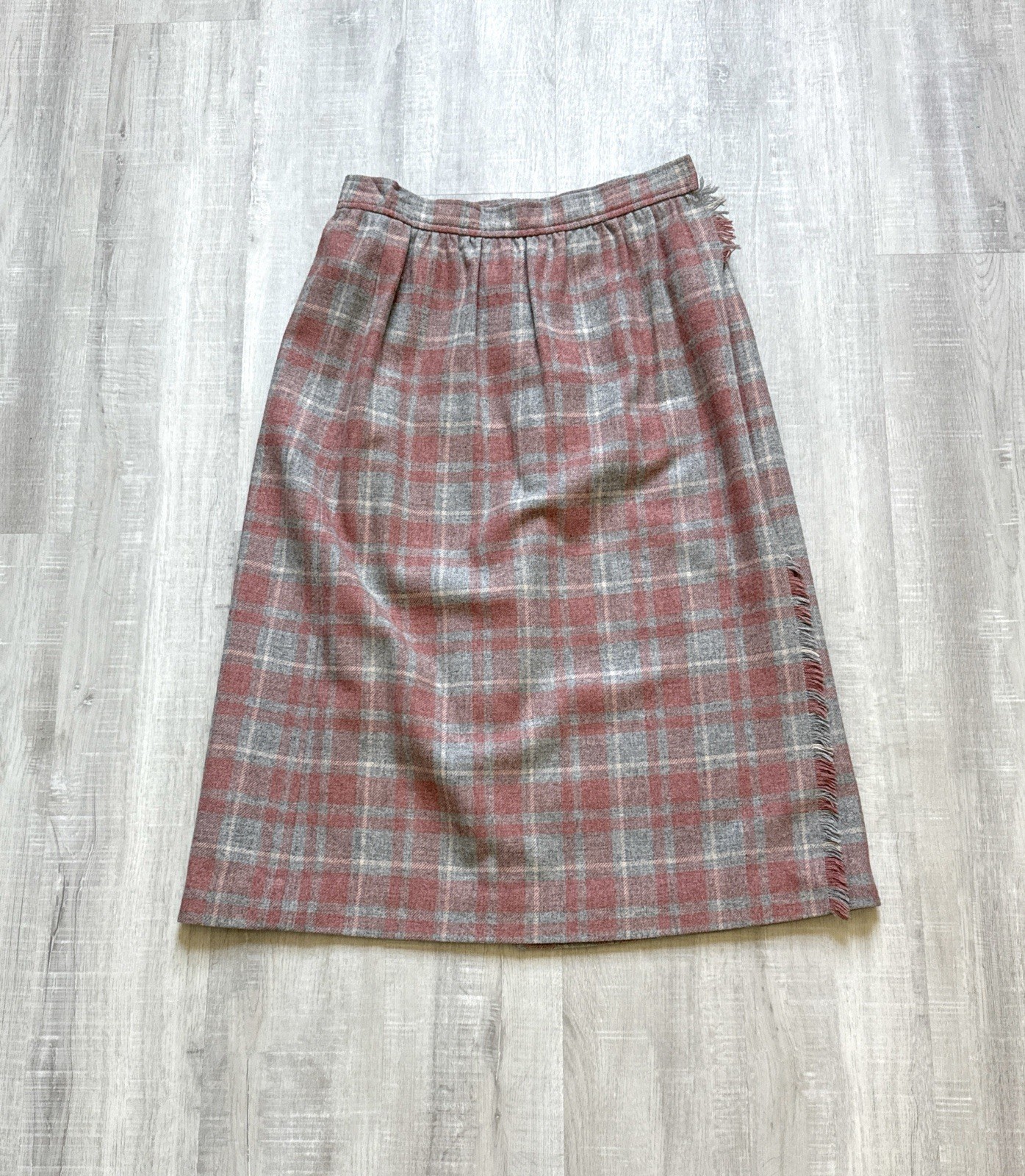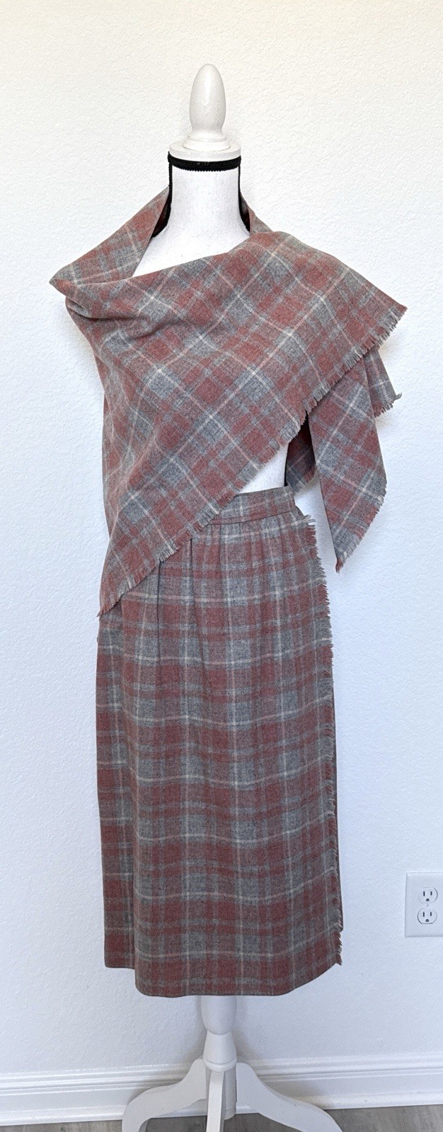 1960s 1970s Tartan Plaid Wool Midi Skirt and Shawl Combo