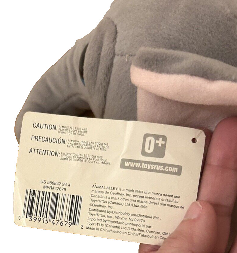 как выглядит Vtg Animal Alley Elephant Big Eyes Toys R US Plush Grey Stuffed Animal W/ Tags фото