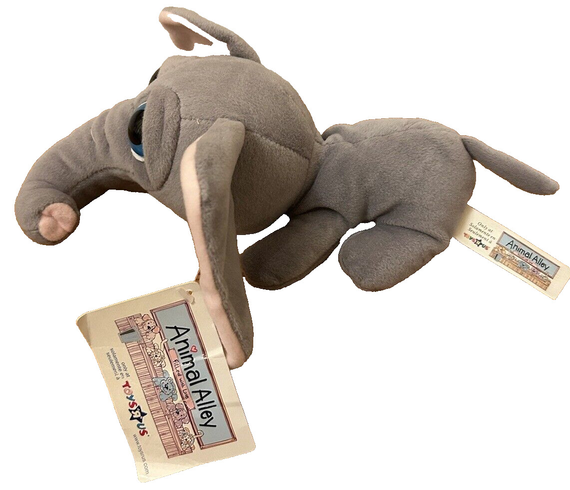Vtg Animal Alley Elephant Big Eyes Toys R US Plush Grey Stuffed Animal W/ Tags