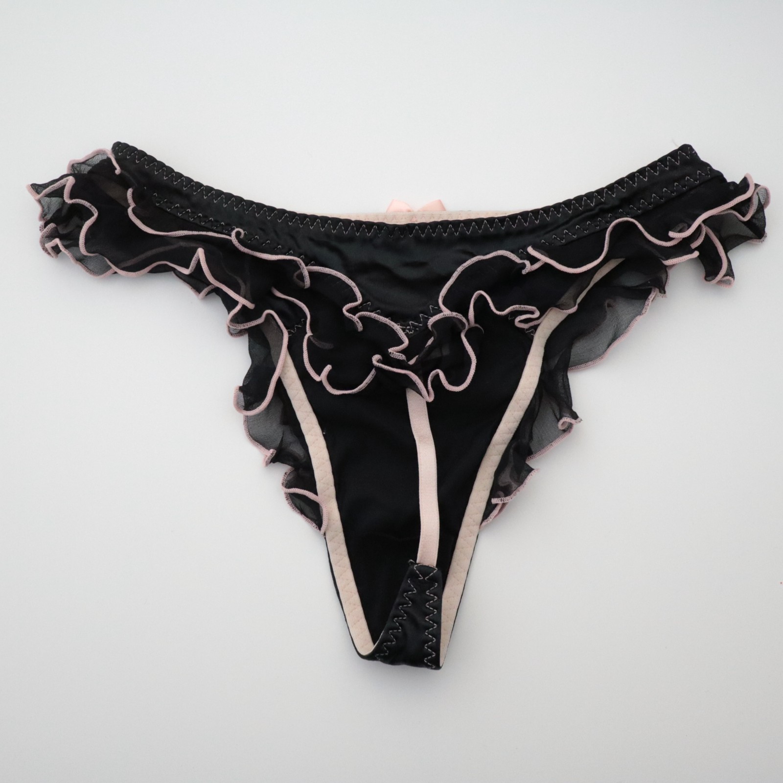 как выглядит NEW Victorias Secret VTG Y2K Dupont Ruffle Second Skin Satin Thong Panty SMALL фото