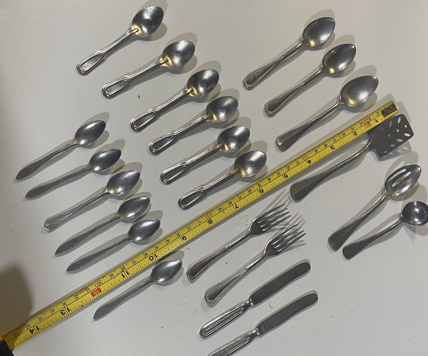 Vintage Germany Doll Child Metal Aluminum Cutlery Utensils 22 Pieces