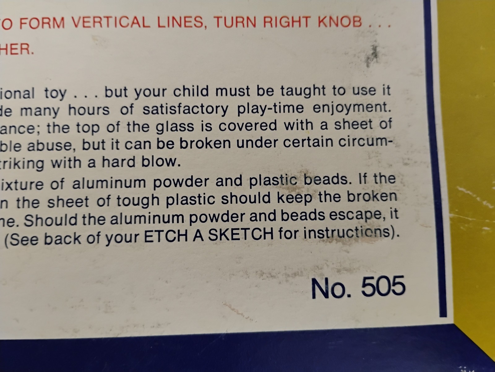 OHIO ART No. 505 Etch A Sketch, Patent: 3055113, 3760505
