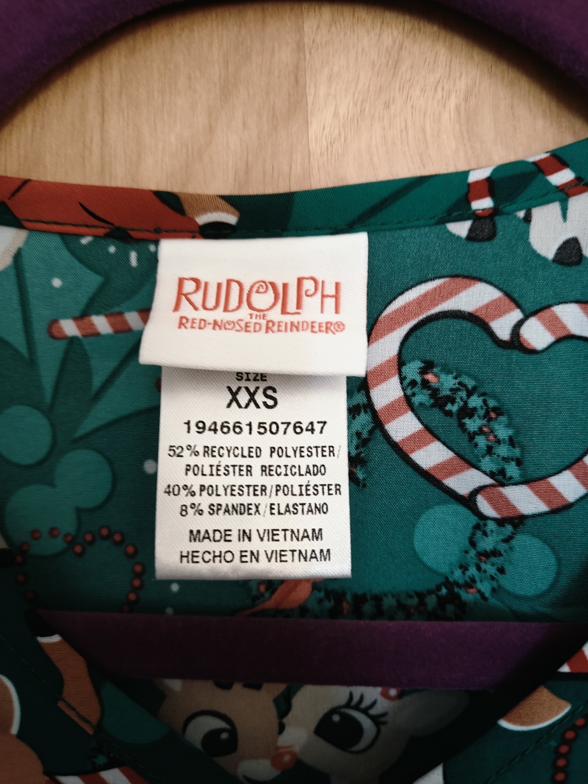 Rudolph the Red Nosed Reindeer Scrub Size XXS Christmas Nurse Medical NWT Top