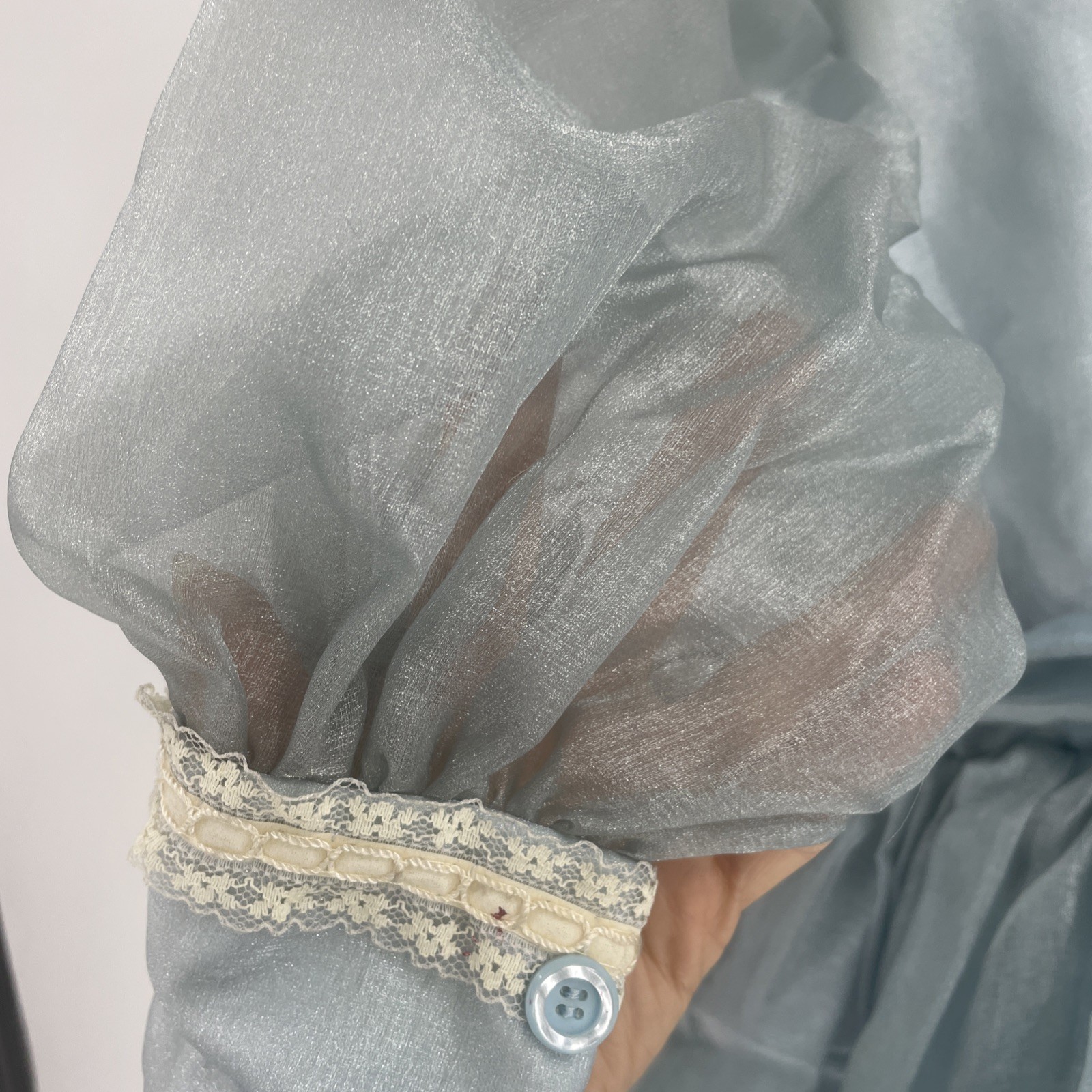 как выглядит Vtg girls Victorian pageant full circle dress ruffles blue child Cottage Core фото