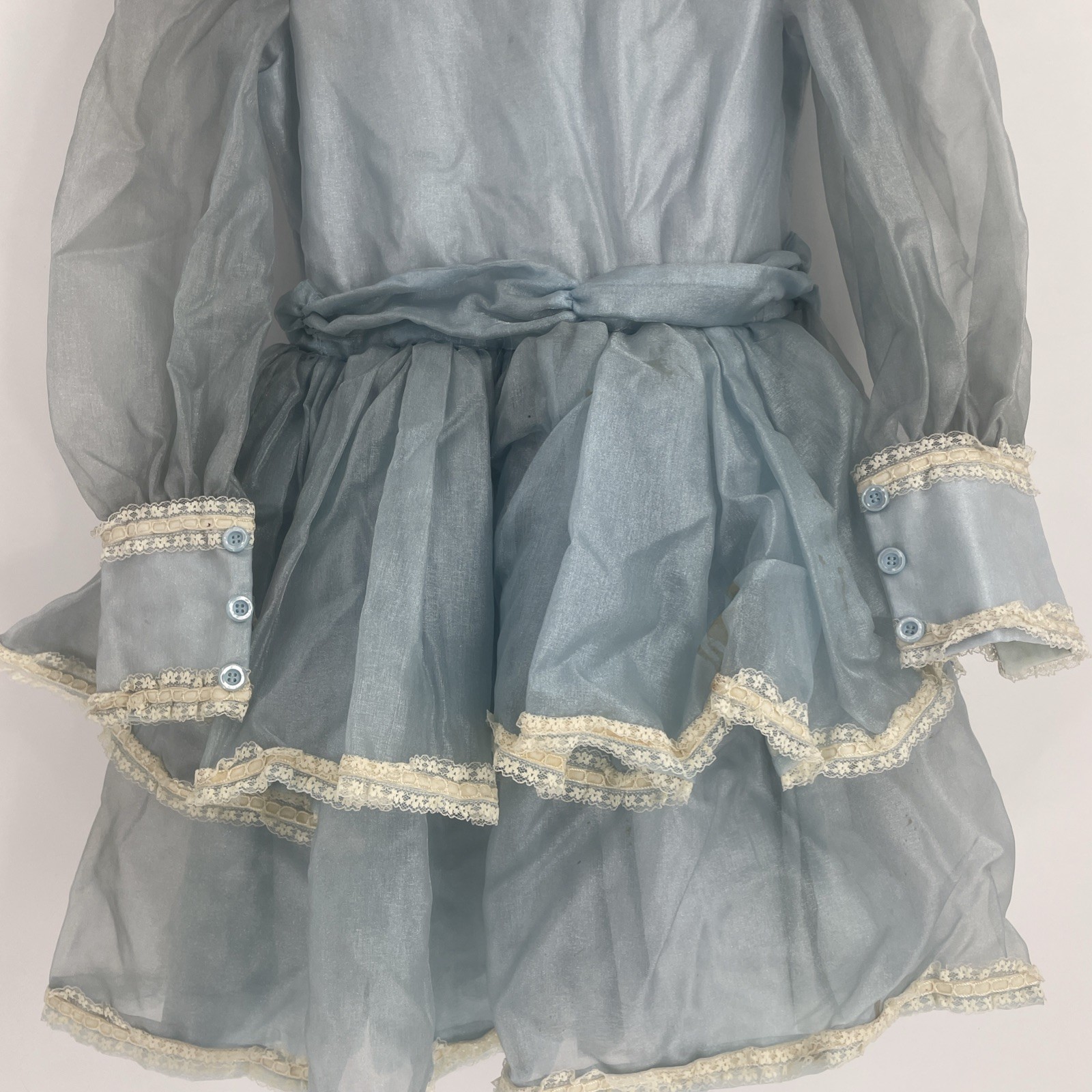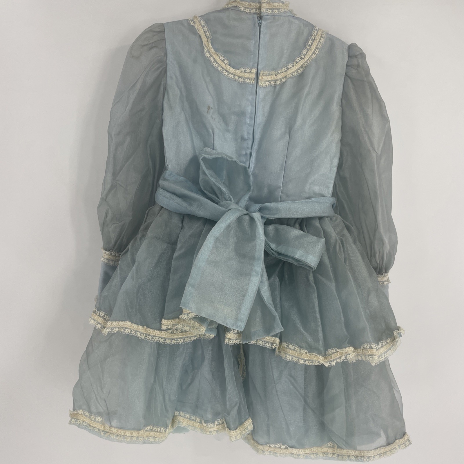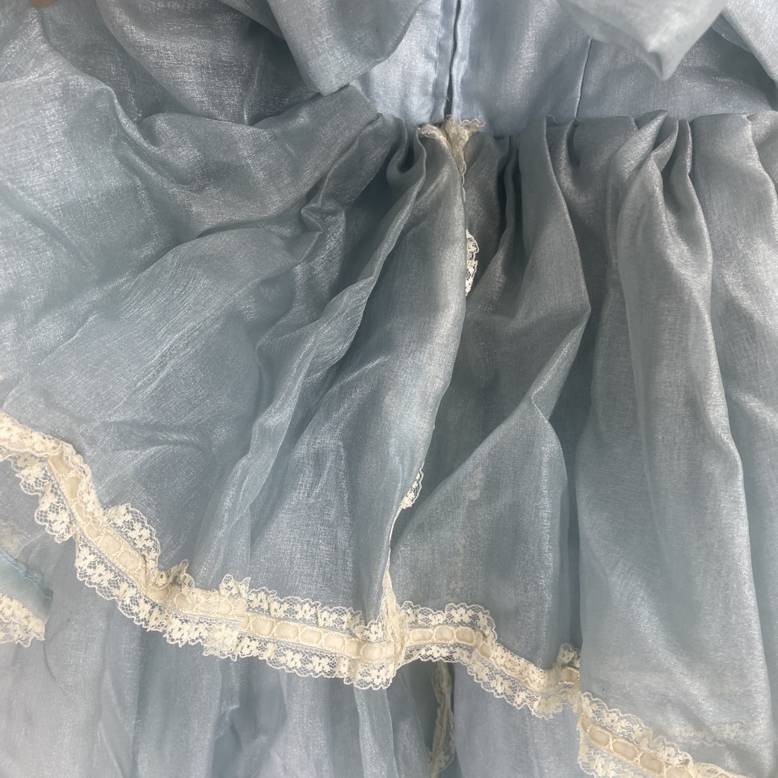 Vtg girls Victorian pageant full circle dress ruffles blue child Cottage Core