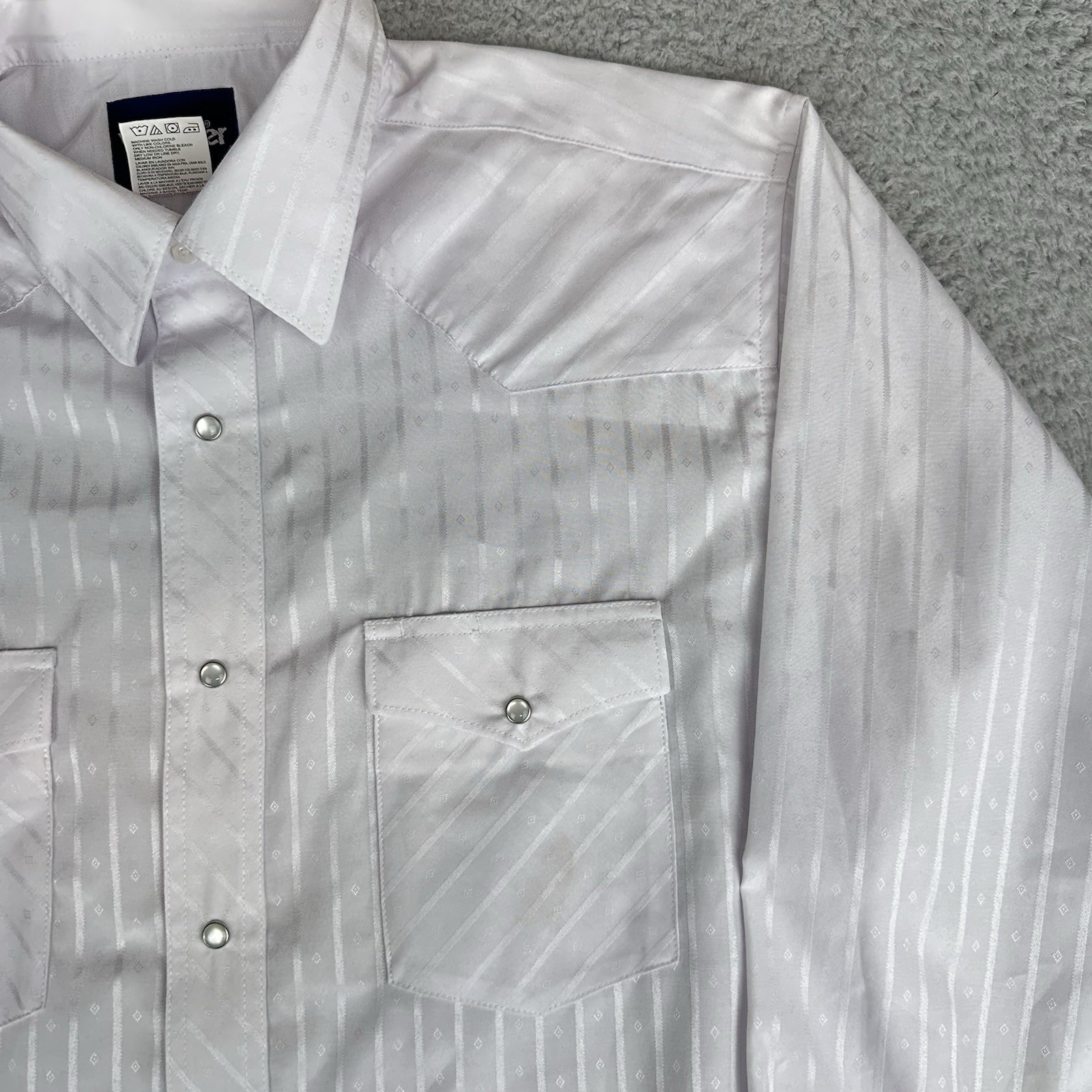 как выглядит Wrangler Pearl Snap Dress Shirt White L 16.5 X 35 фото