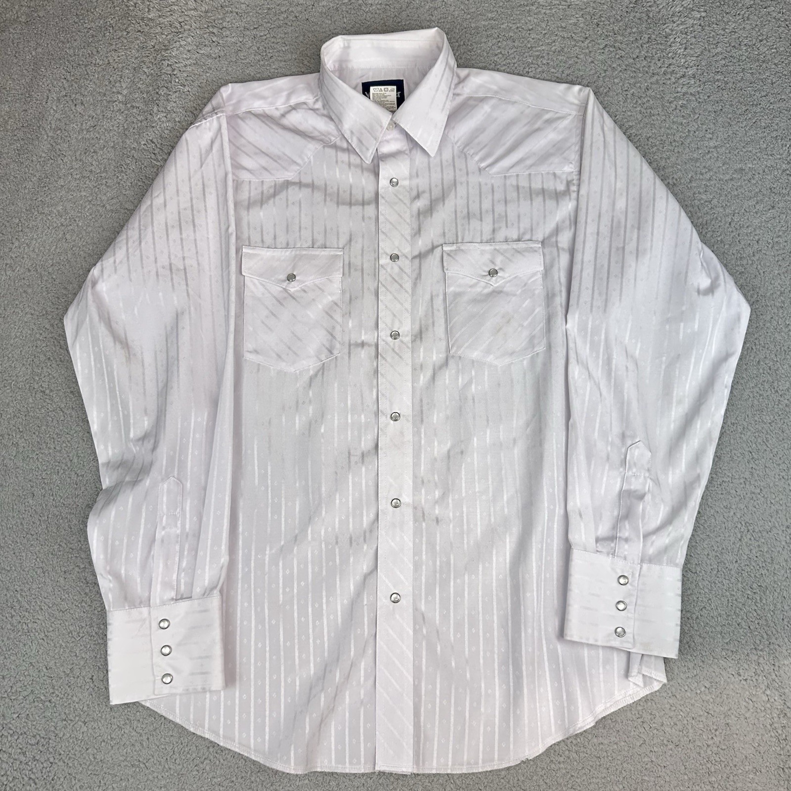 Wrangler Pearl Snap Dress Shirt White L 16.5 X 35