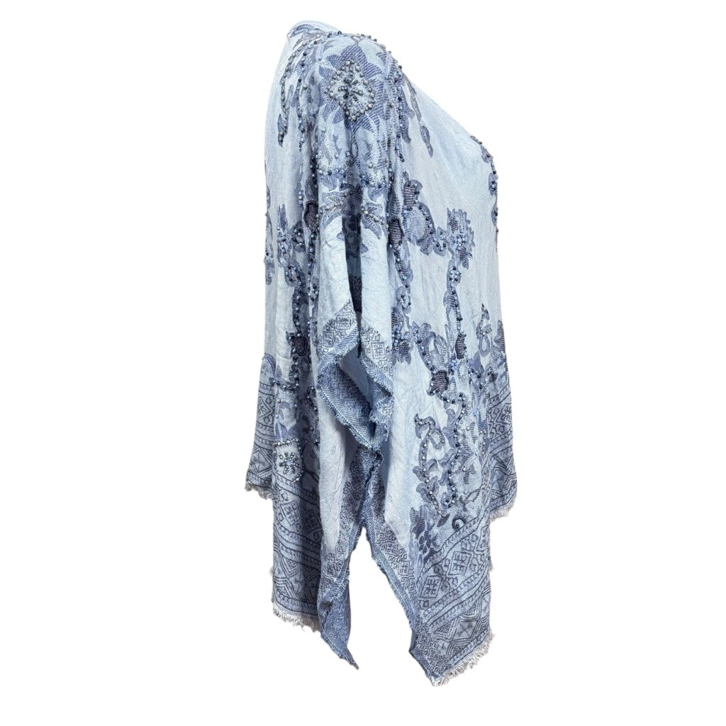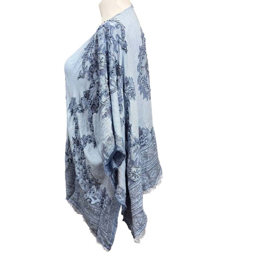 Chico s Blue Beaded Embroidered Kimono Wrap One Size Rayon India Boho