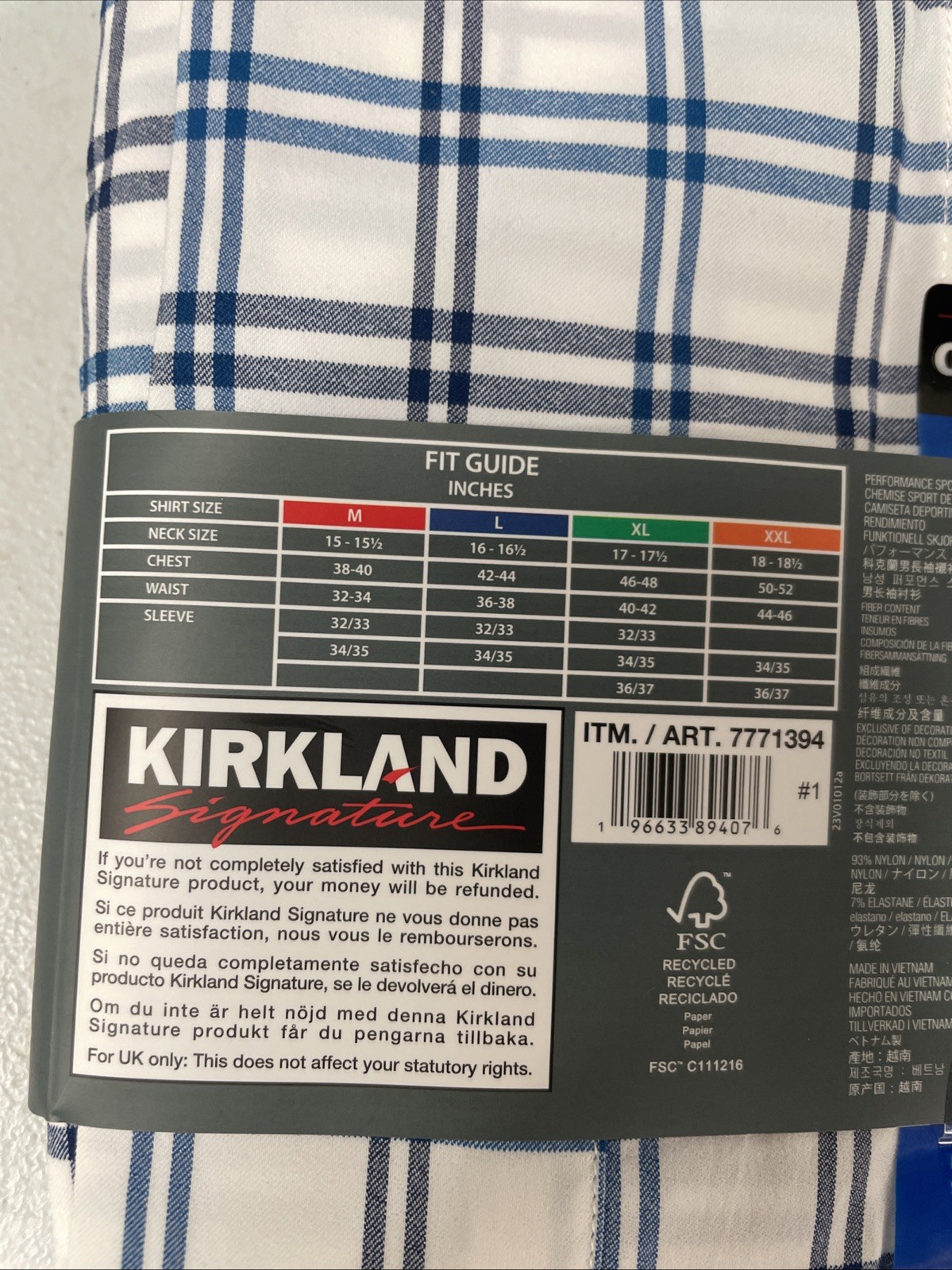 как выглядит Kirkland Signature Mens Performance Sport Shirt LARGE 16-16.5, 32/33 BLUE/WHITE фото