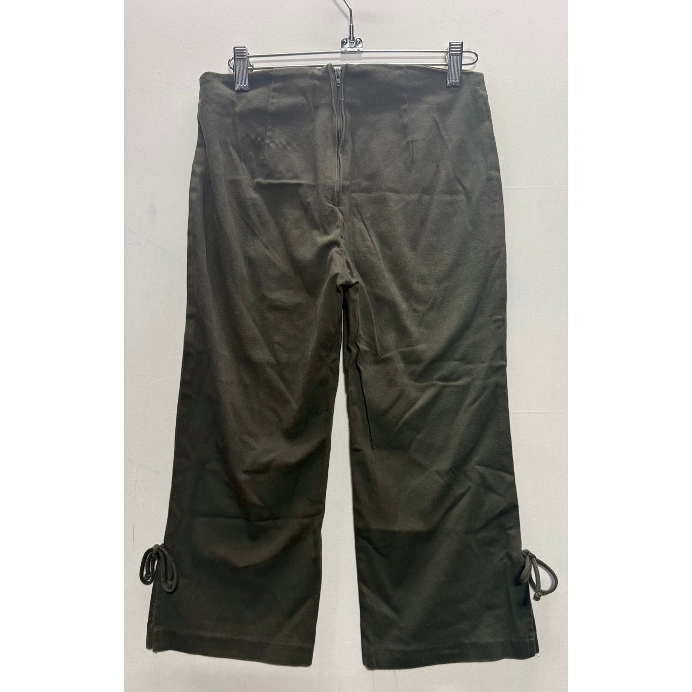 Vintage Women's Olive Green Drawstring Capri Pants, Size 3, Casual Fit