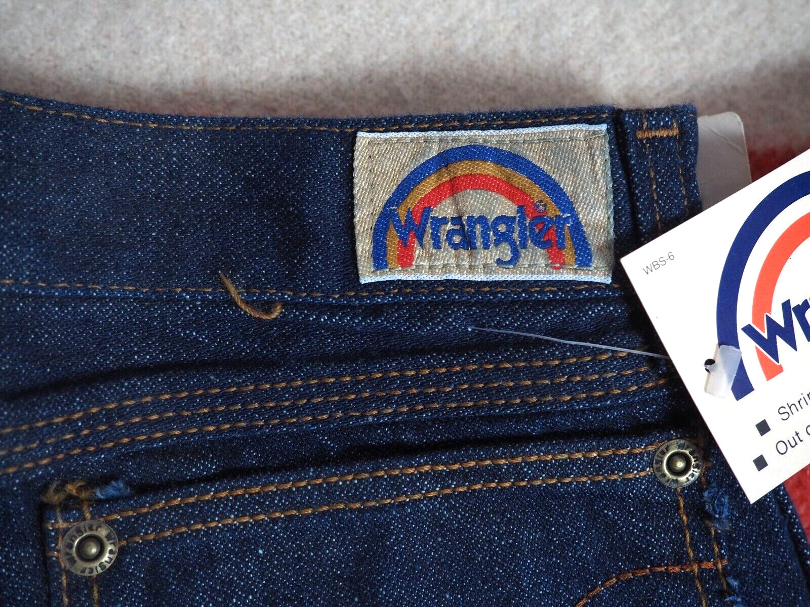 VTG 70s Wrangler No Fault Wide Flare Rainbow Student 24x27 Blue Denim Jeans NOS
