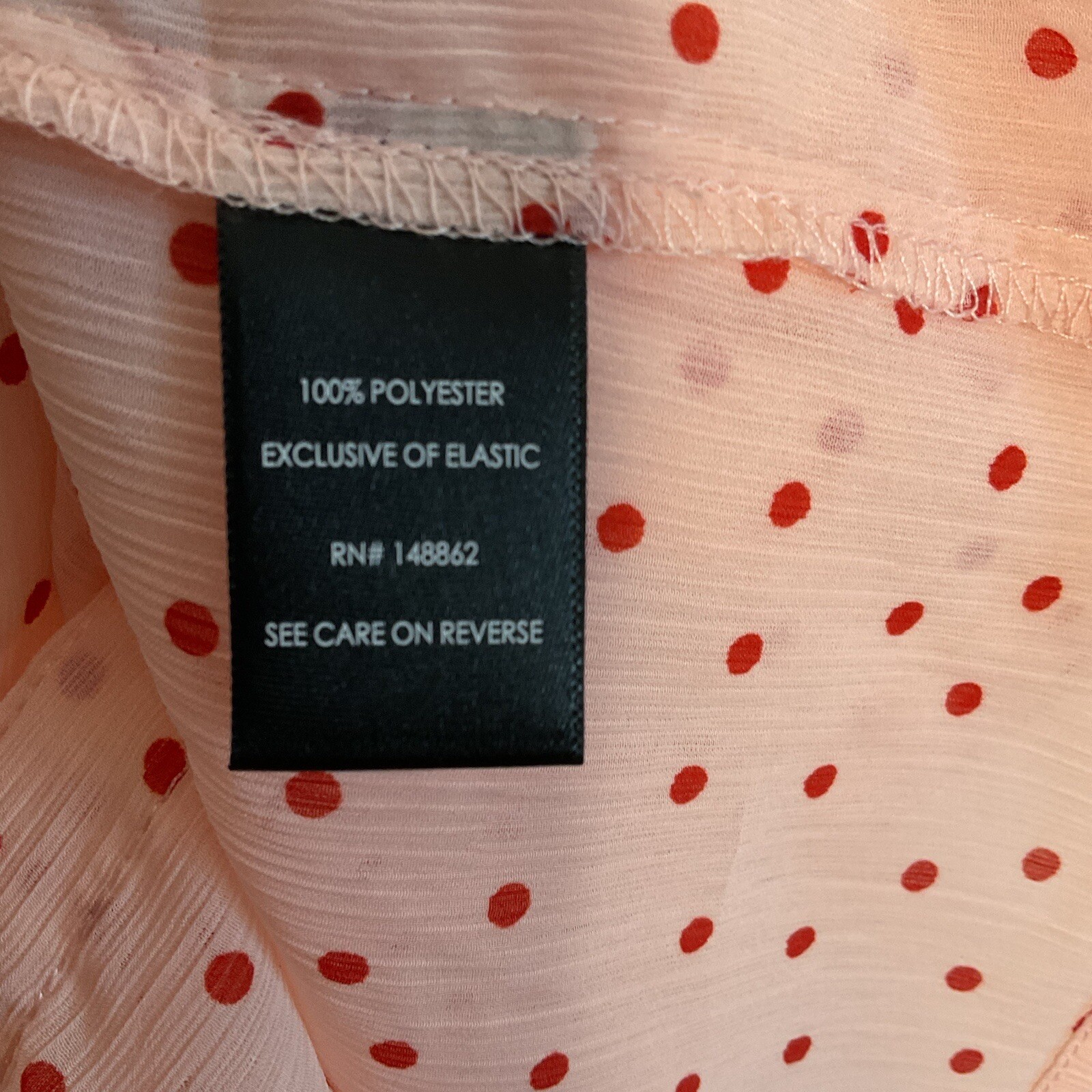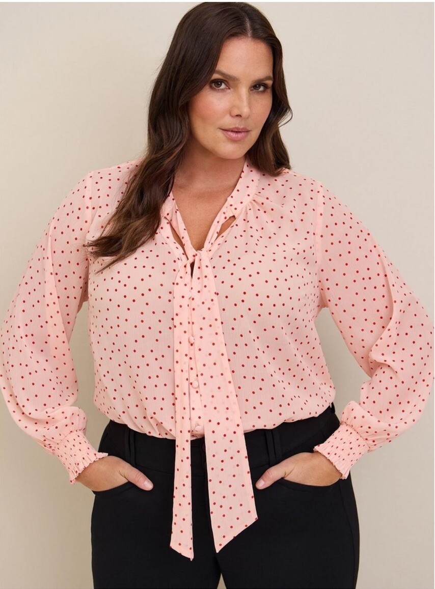 Torrid Blouse Size 2 Pink Polka Dot Chiffon Semi Sheer Long Sleeve Neck Tie 2X