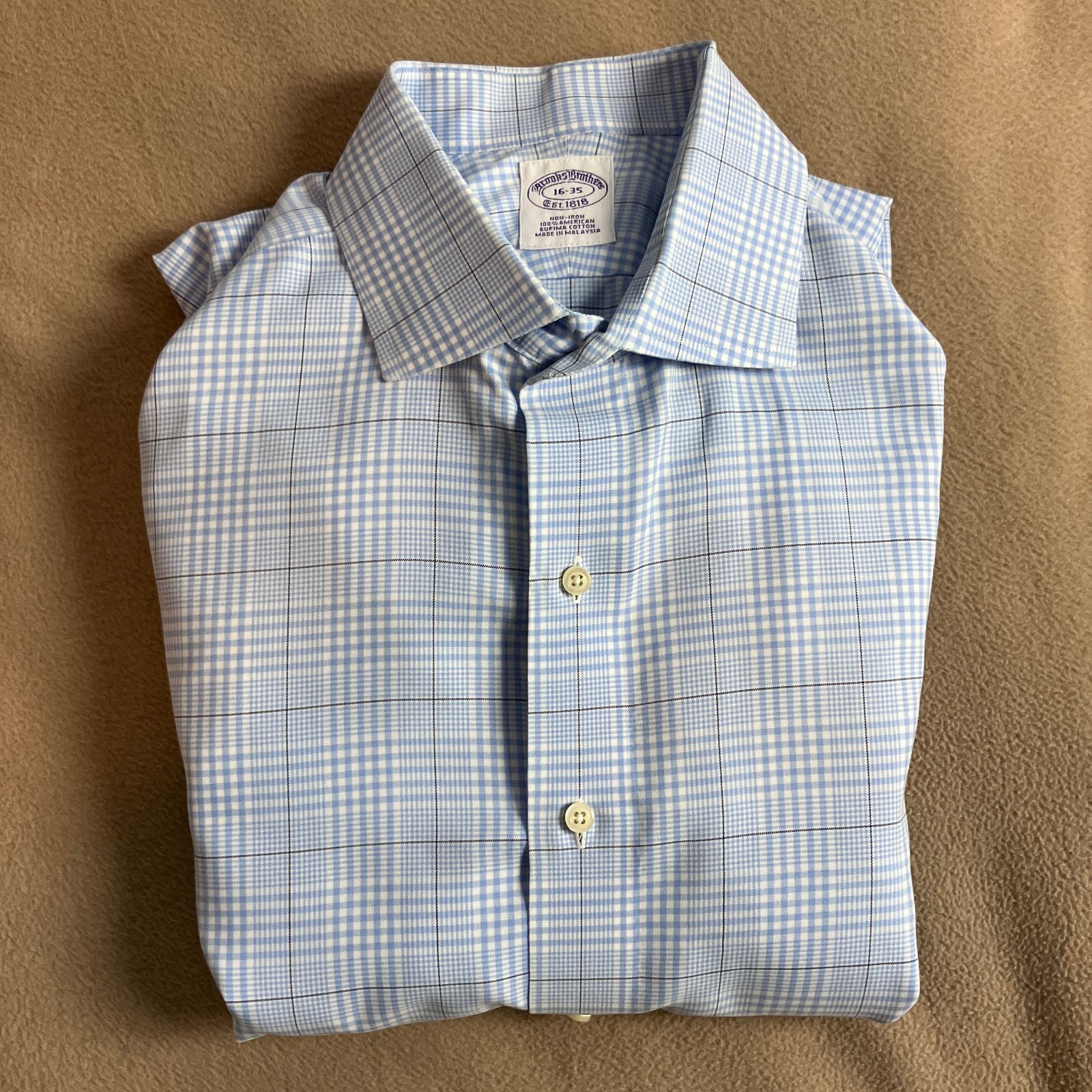 как выглядит Brooks Brothers Mens Non-Iron Supima Cotton Dress Shirt Size 16-35 Blue Check фото
