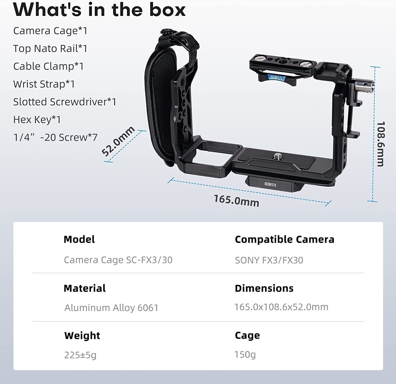 SIRUI Full Camera Cage for Sony SC-FX3/FX30 HDMI Clamp 1/4-20 ARRI 3/8-16