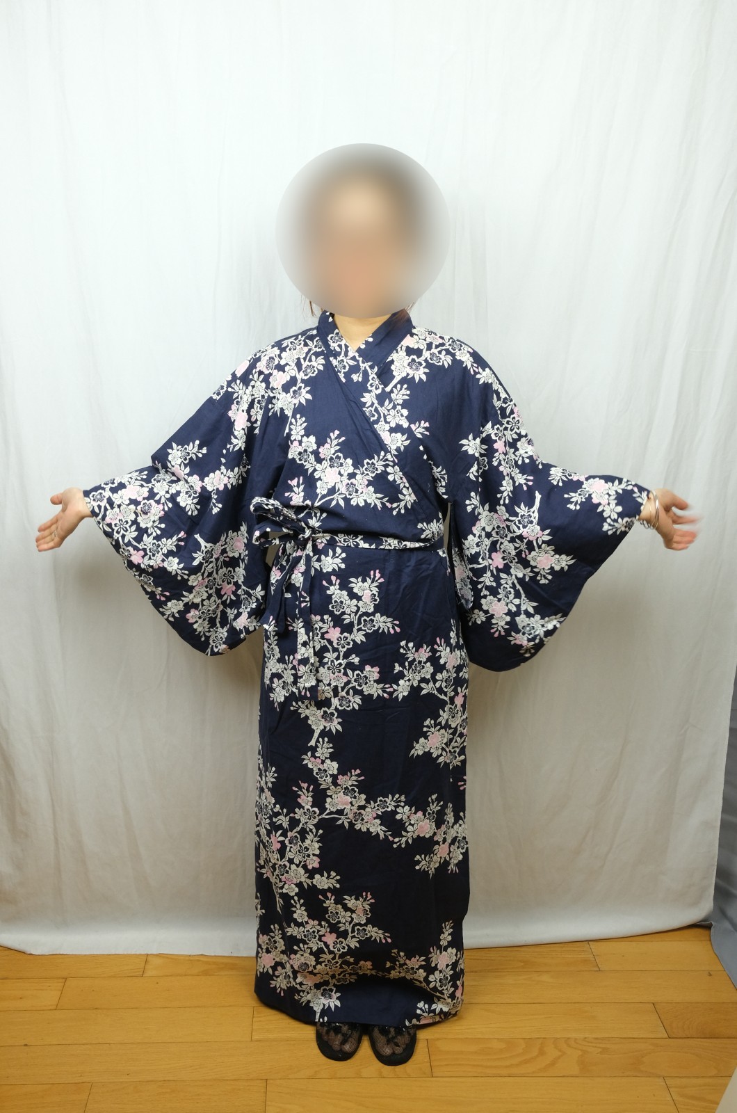 как выглядит Traditional Japanese Yukata Kimono Robe Navy Blue Cherry Blossom Floral Size S фото