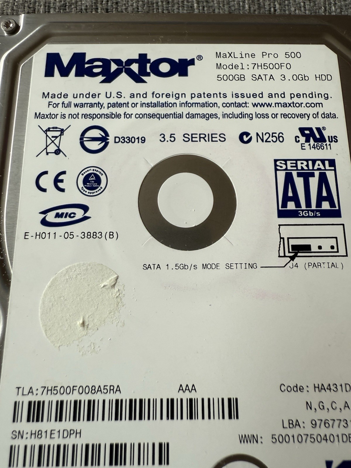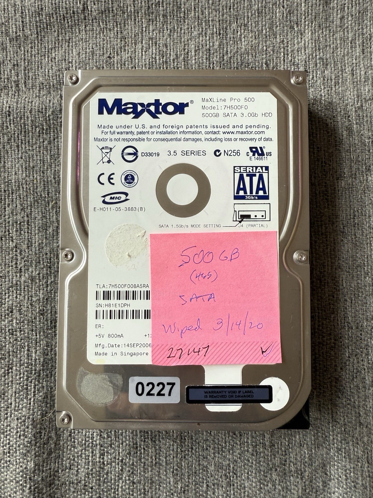 Maxtor MaxLine Pro 7H500F0 500G 7200RPM SATA 3.5 Hard Drive - Tested
