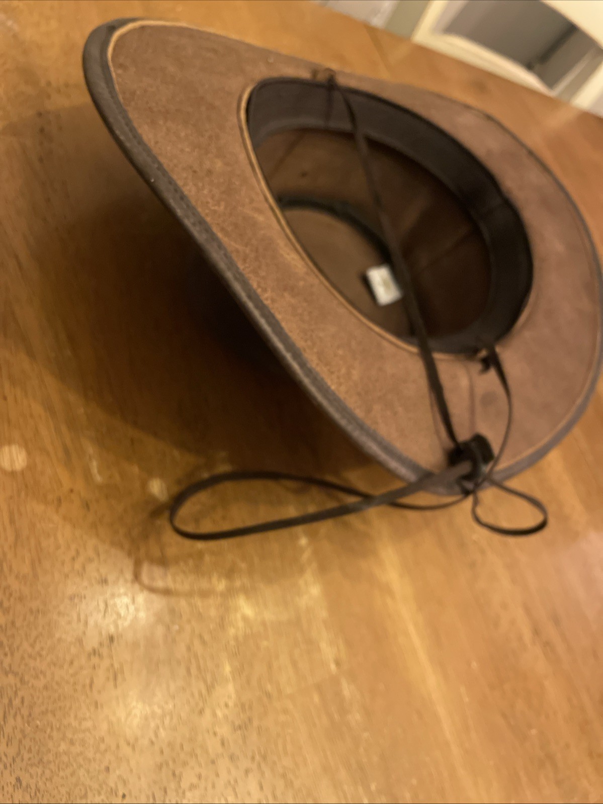 как выглядит New HADZAM Distress Men and Women Brown Genuine Leather Cowboy Western Hat Small фото