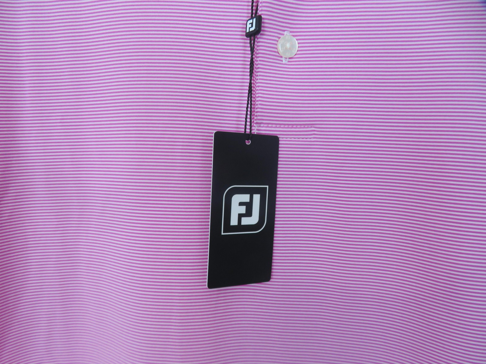 как выглядит FootJoy Polo Shirt Mens Medium Pink Micro Stripe Golf Moisture Wicking 30462 фото