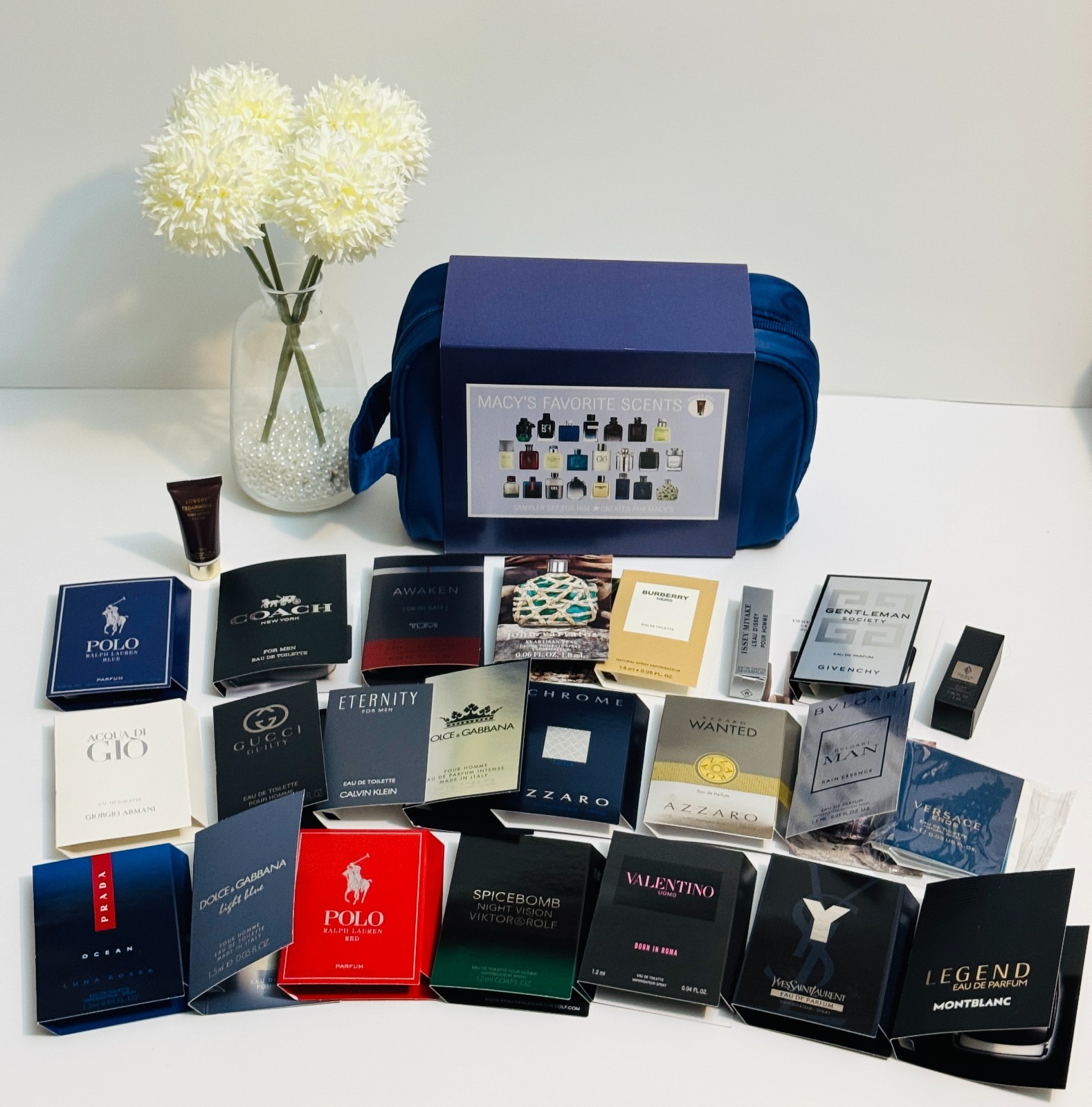 Limited Macys' 25-Pc. Fragrance Sampler Set For Him With Blue Gift Bag