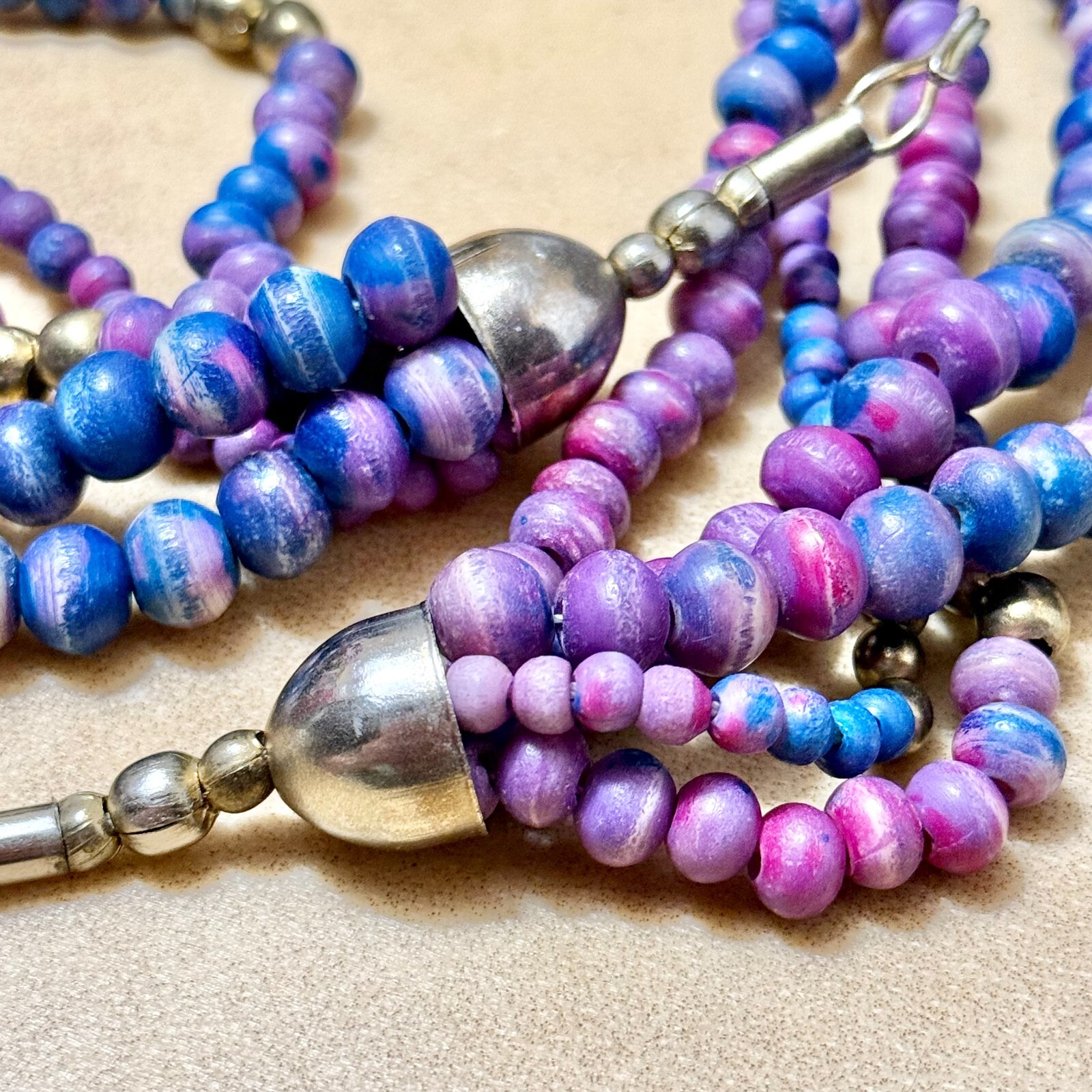 как выглядит Vintage Tagua Nut Necklace in Pink Purple, Layered Boho Beads - 22.5" фото