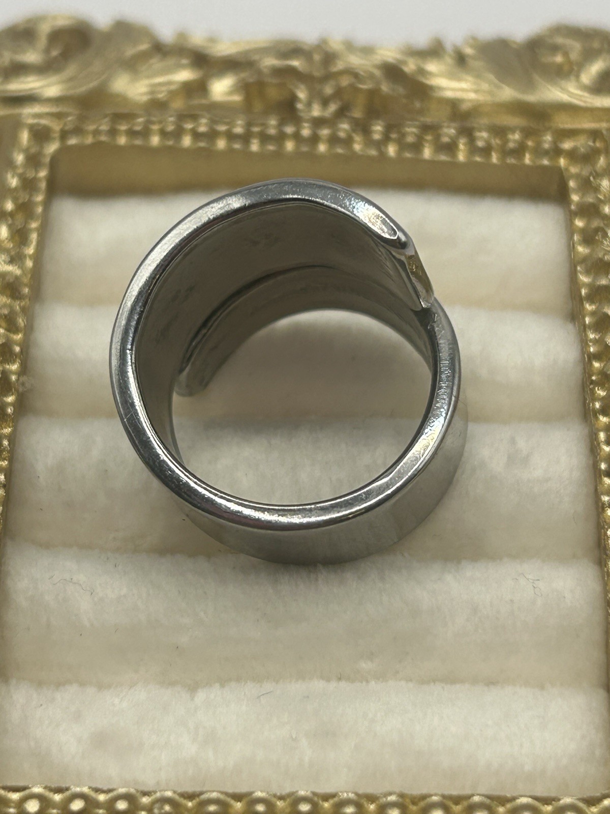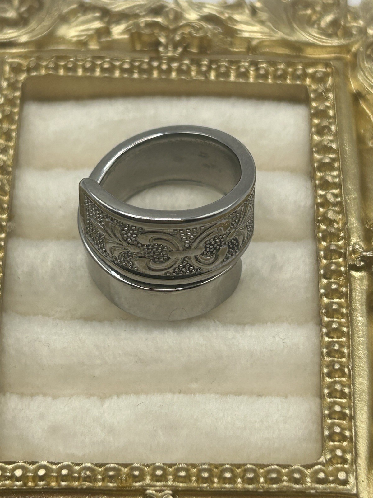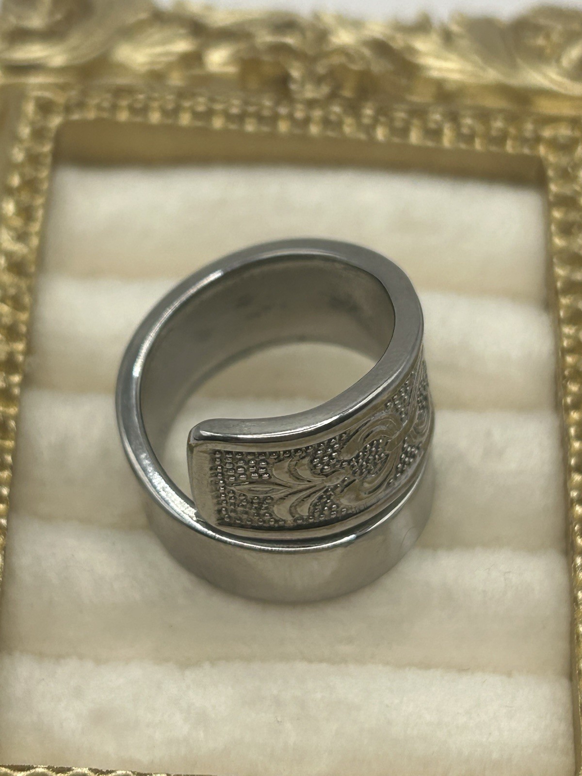 как выглядит Vintage Spoon Handle Ring Stainless Steel Filigree Design Size 7.5 Adjustable фото