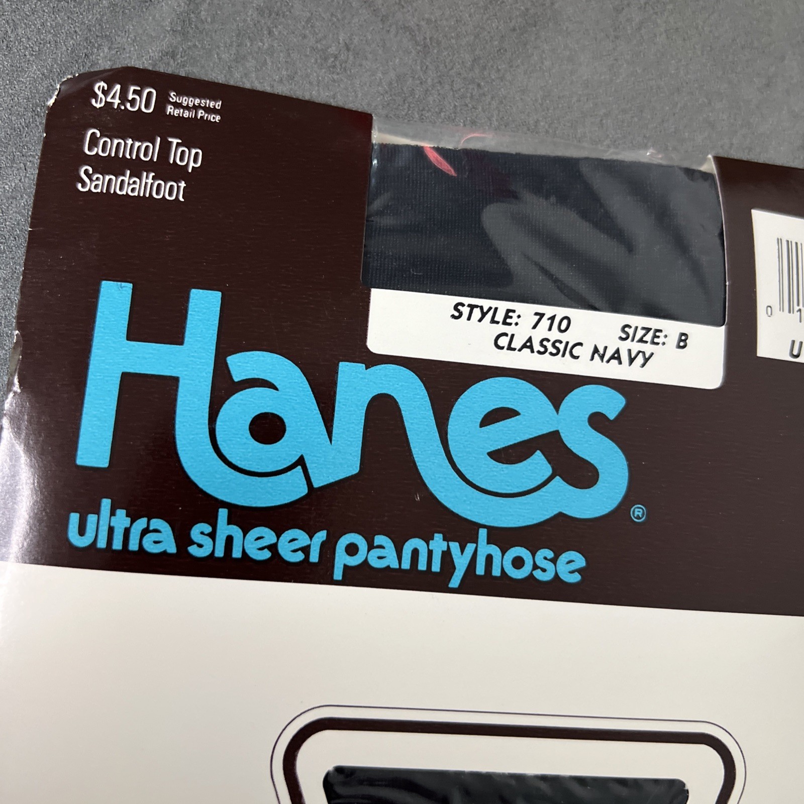 VTG 1997 Hanes Ultra Sheer Pantyhose Classic Navy Control Top Sandalfoot Size C