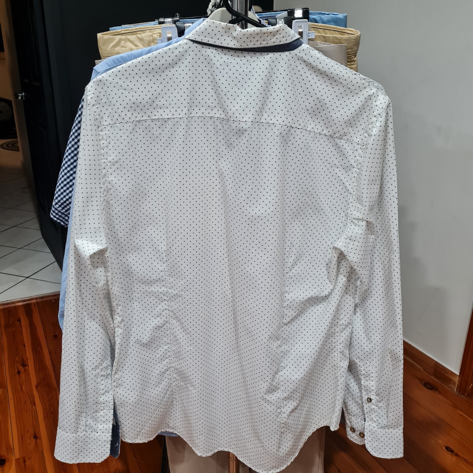 Men's size L 'YD.' White blue polka dot cotton blend long sleeve shirt - EUC