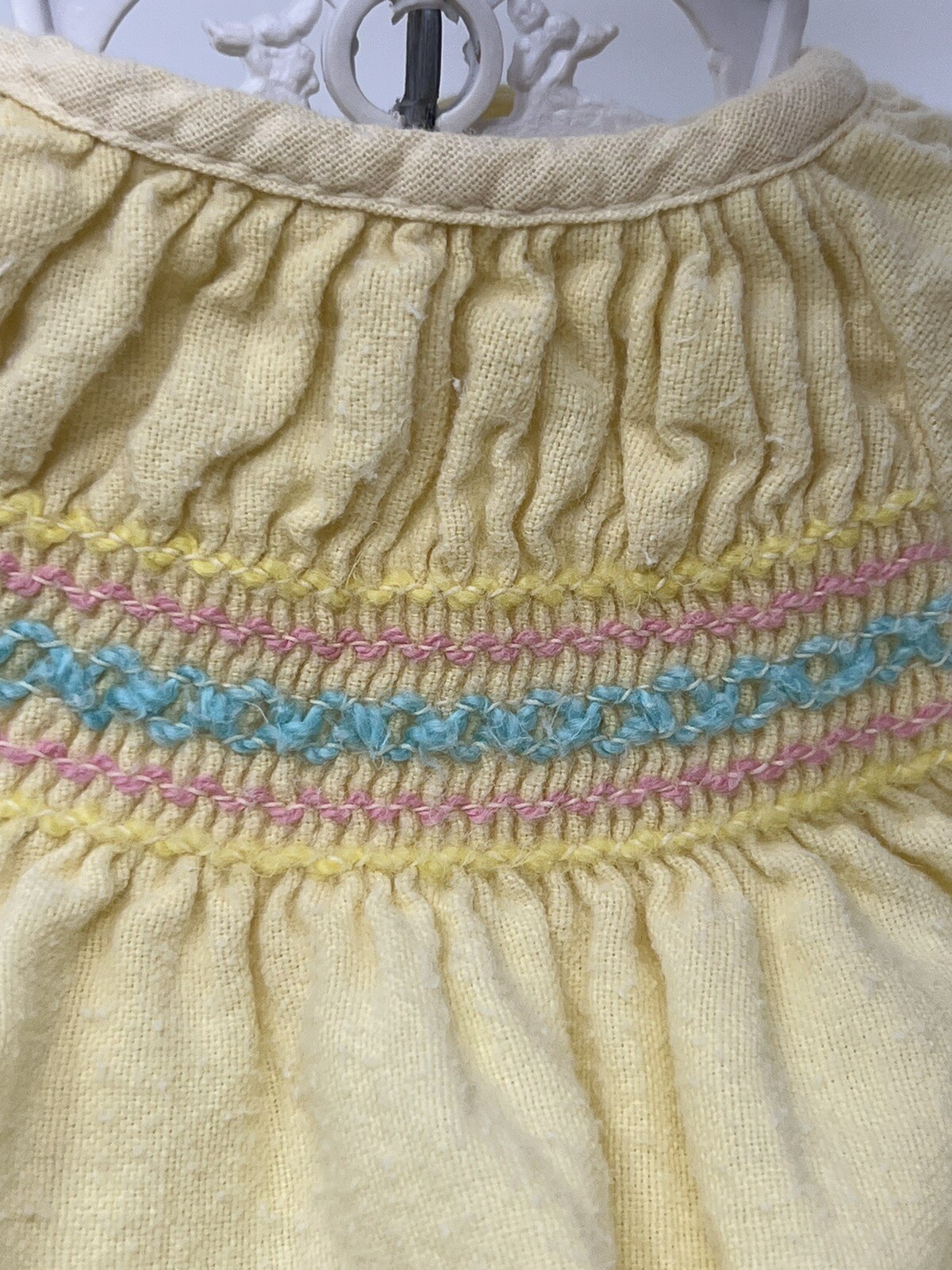 Vintage Baby Smocked Flannel Gown Butter Yellow Newborn Layette Large Doll
