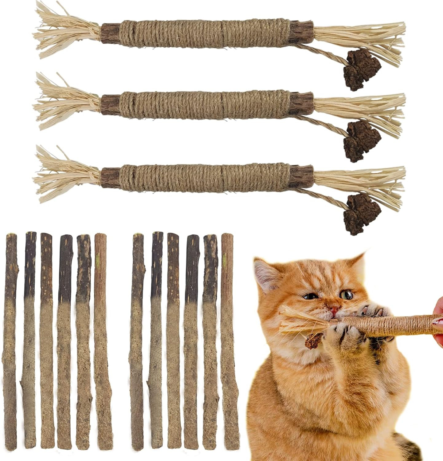 Silvervine Sticks for Cats, 15 PCS Matatabi Cat Toys Wrapped with Natural Catnip