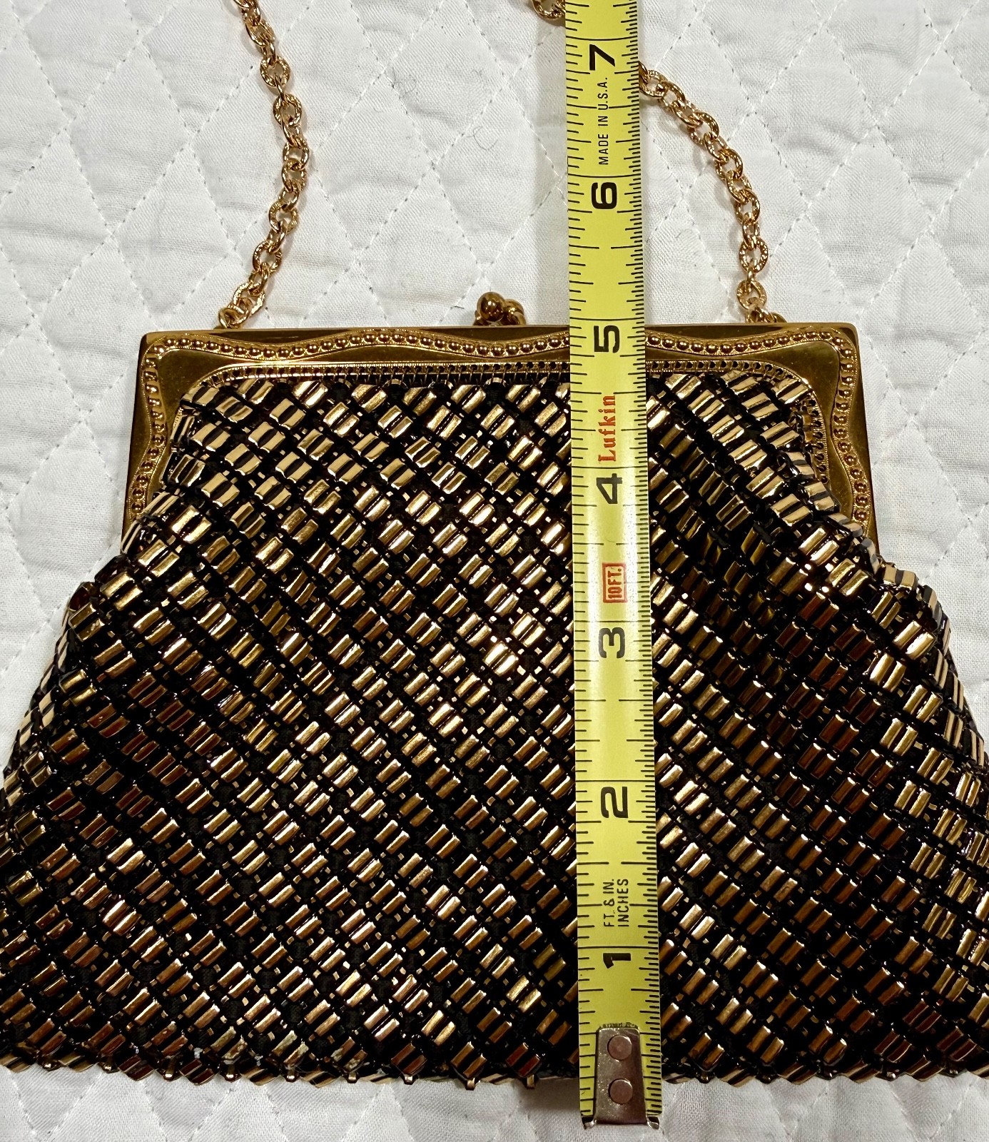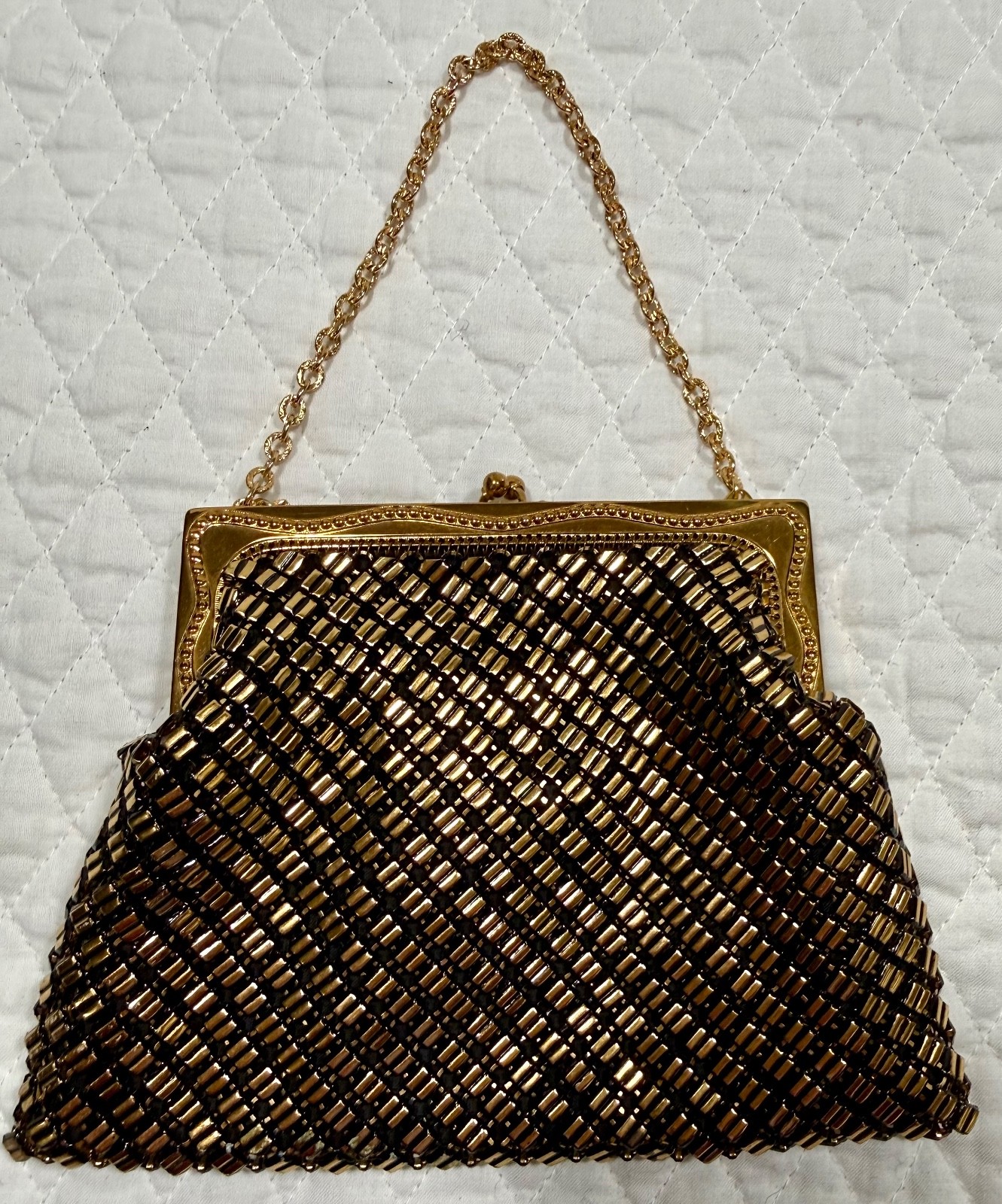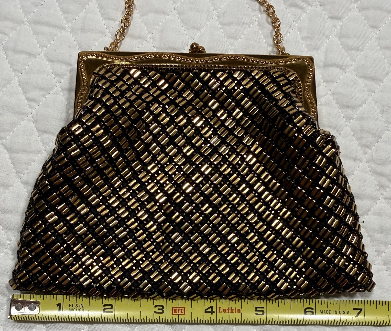 как выглядит Whiting and Davis 1940s Gold Metal Mesh Evening Purse Ornate Frame Black/Gold фото