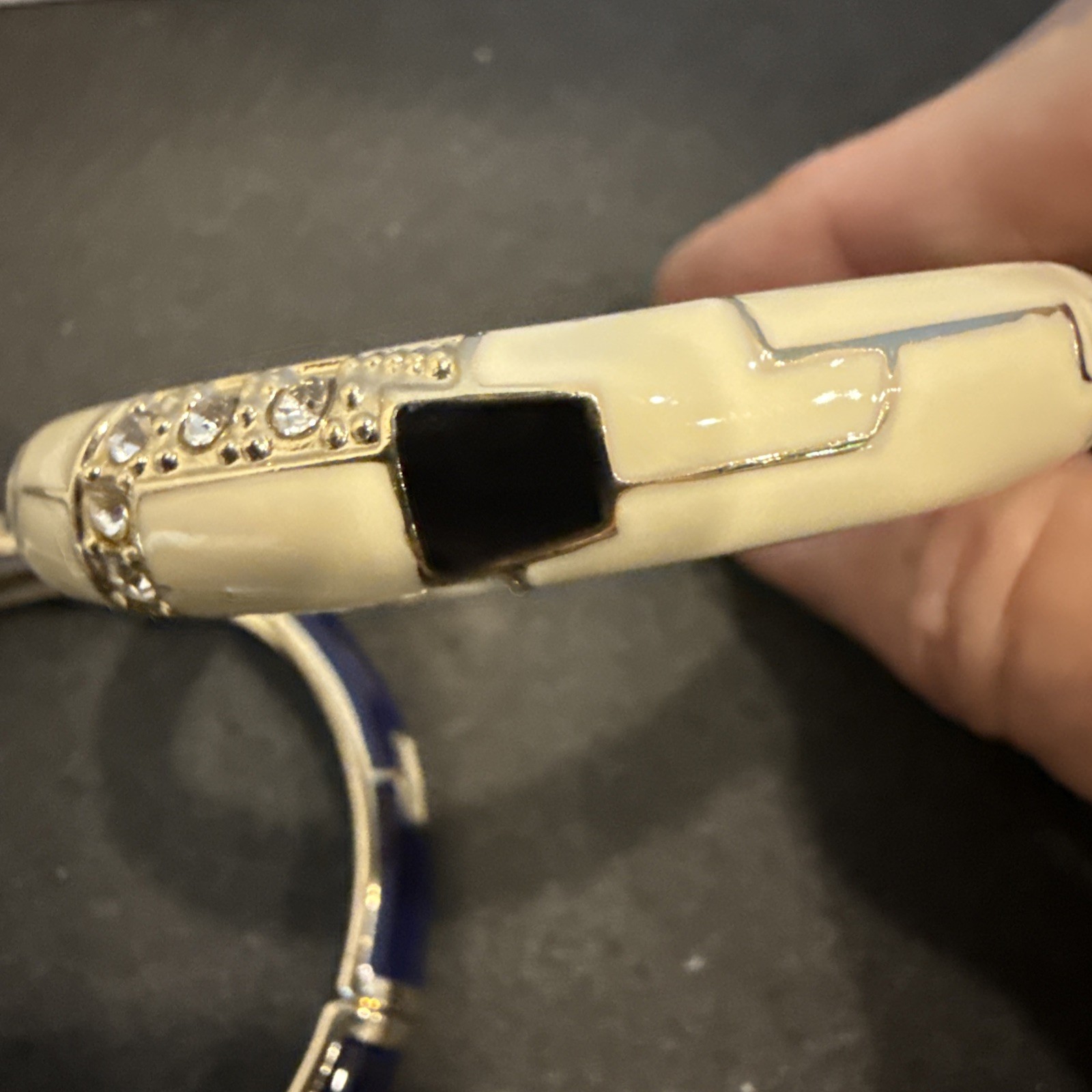 как выглядит 3 Vintage JTF Hinged Bangle Bracelet Gold Tone Enamel Variety Of Colors фото