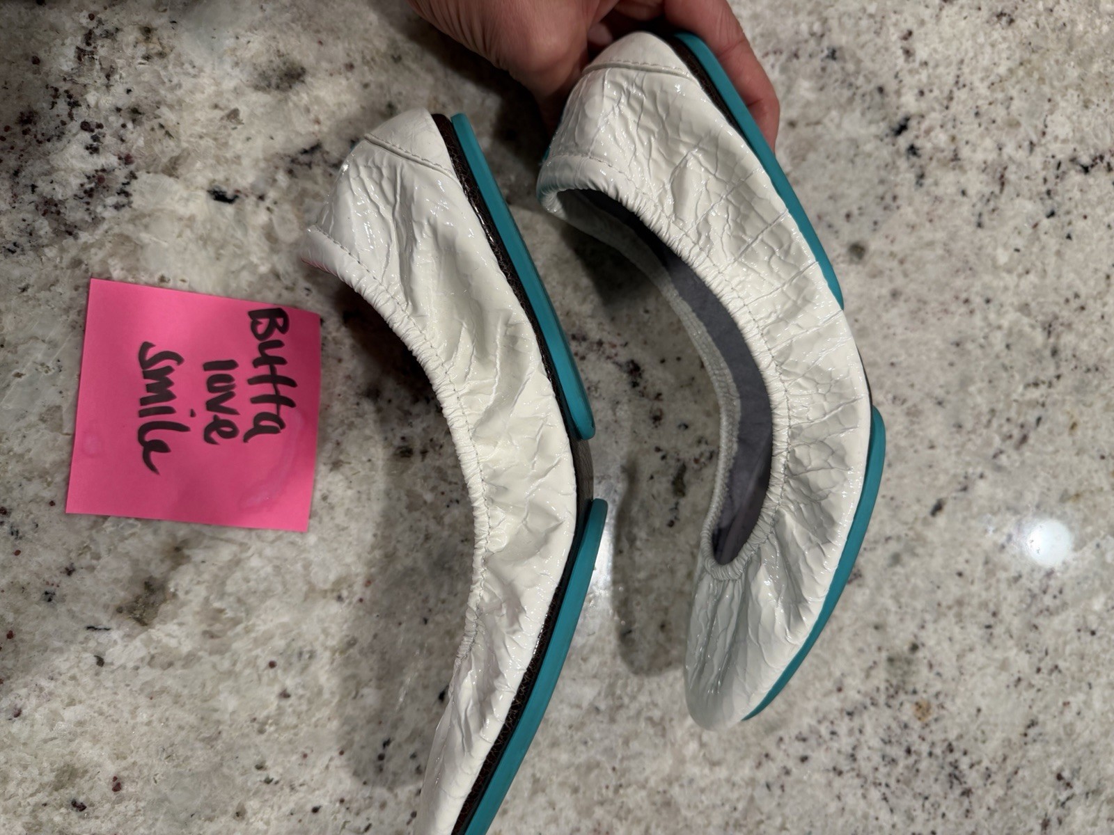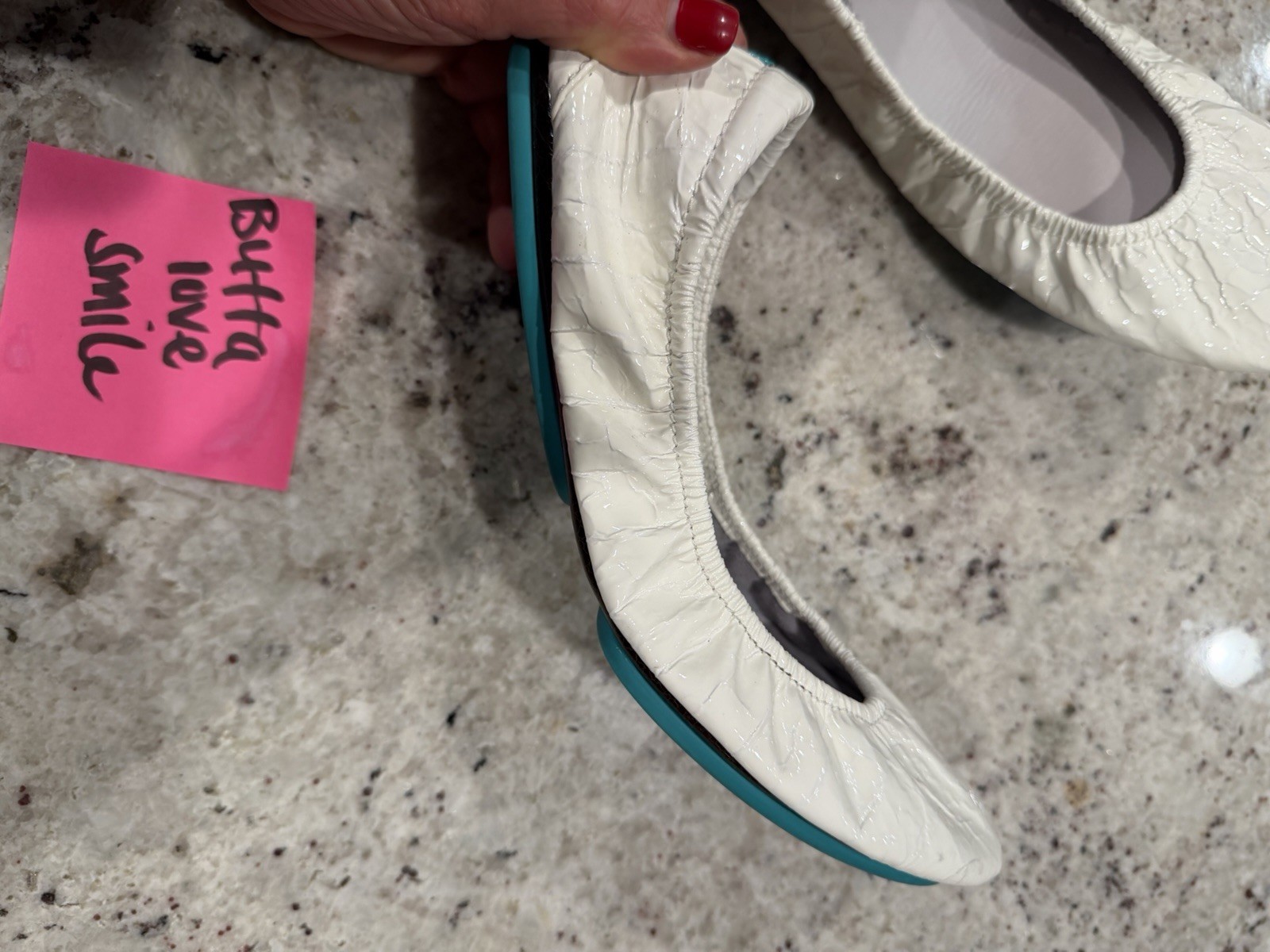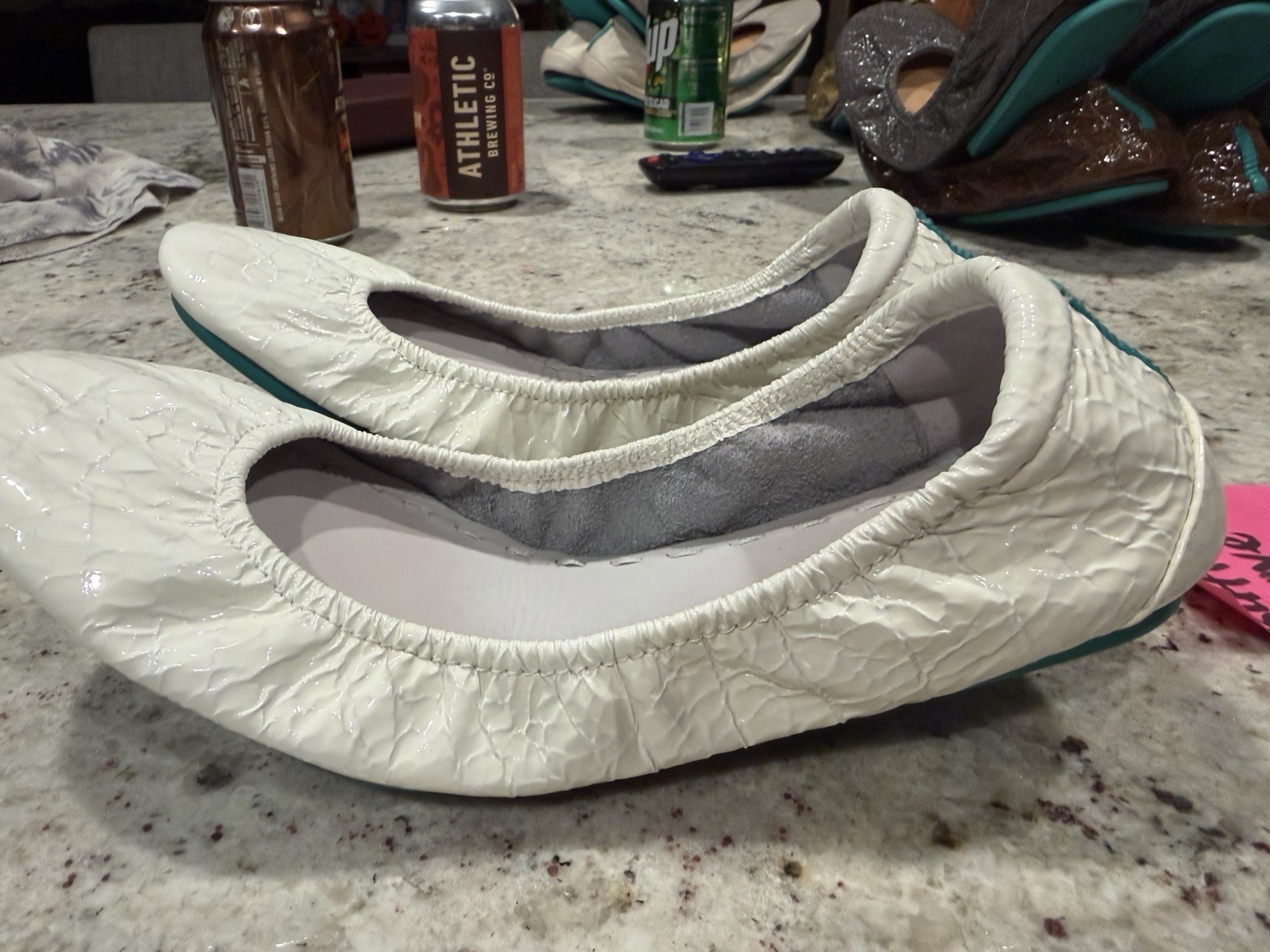 как выглядит Tieks Diamond White Croc Leather Ballet Flats Size 8 EUC Patent фото